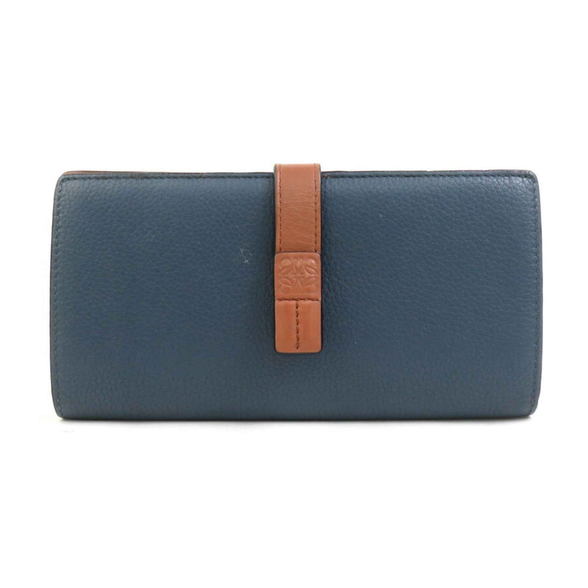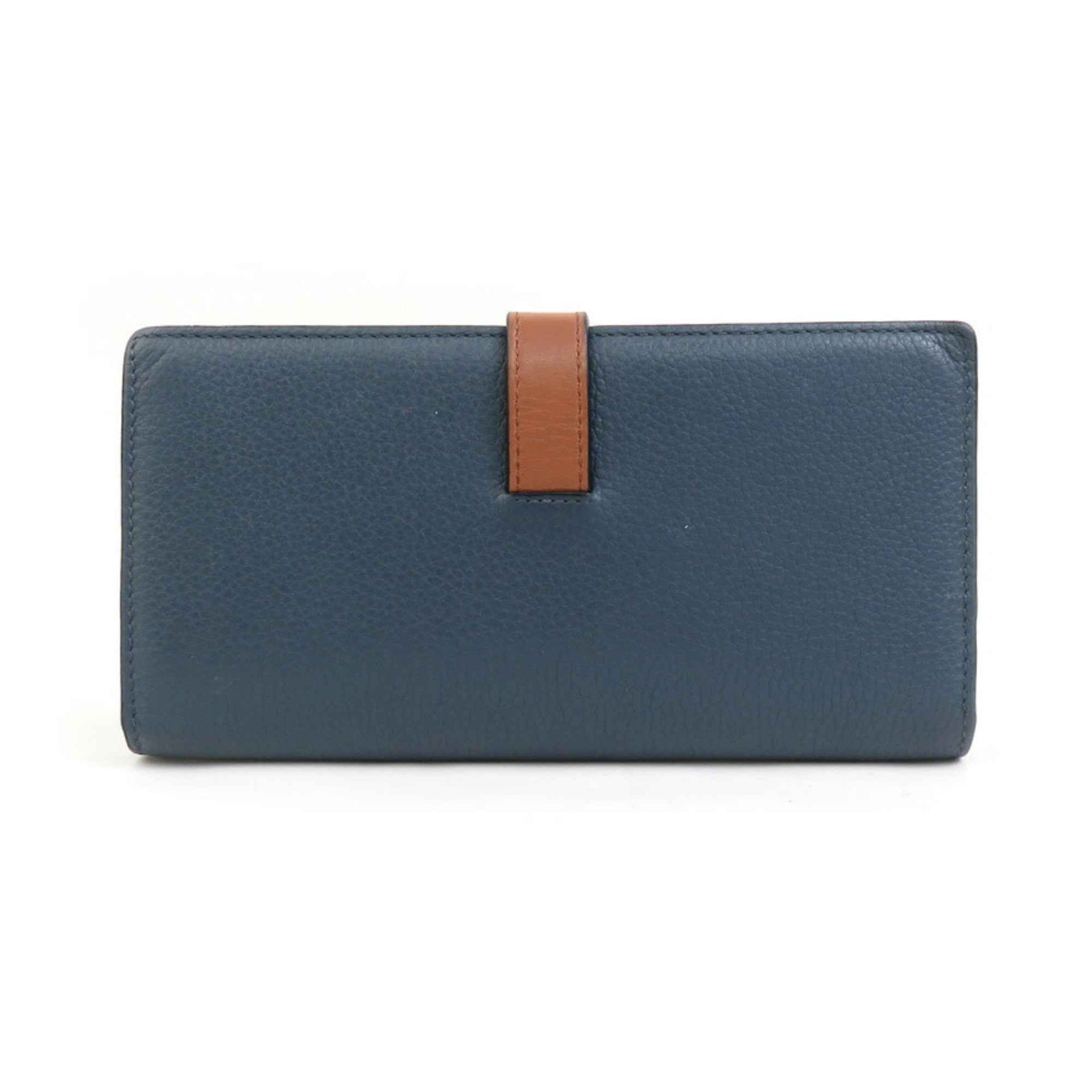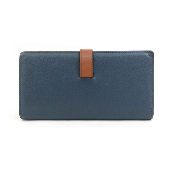 LOEWE Bi-fold Long Wallet Leather Navy x Brown Men\'s Women\'s h31622a