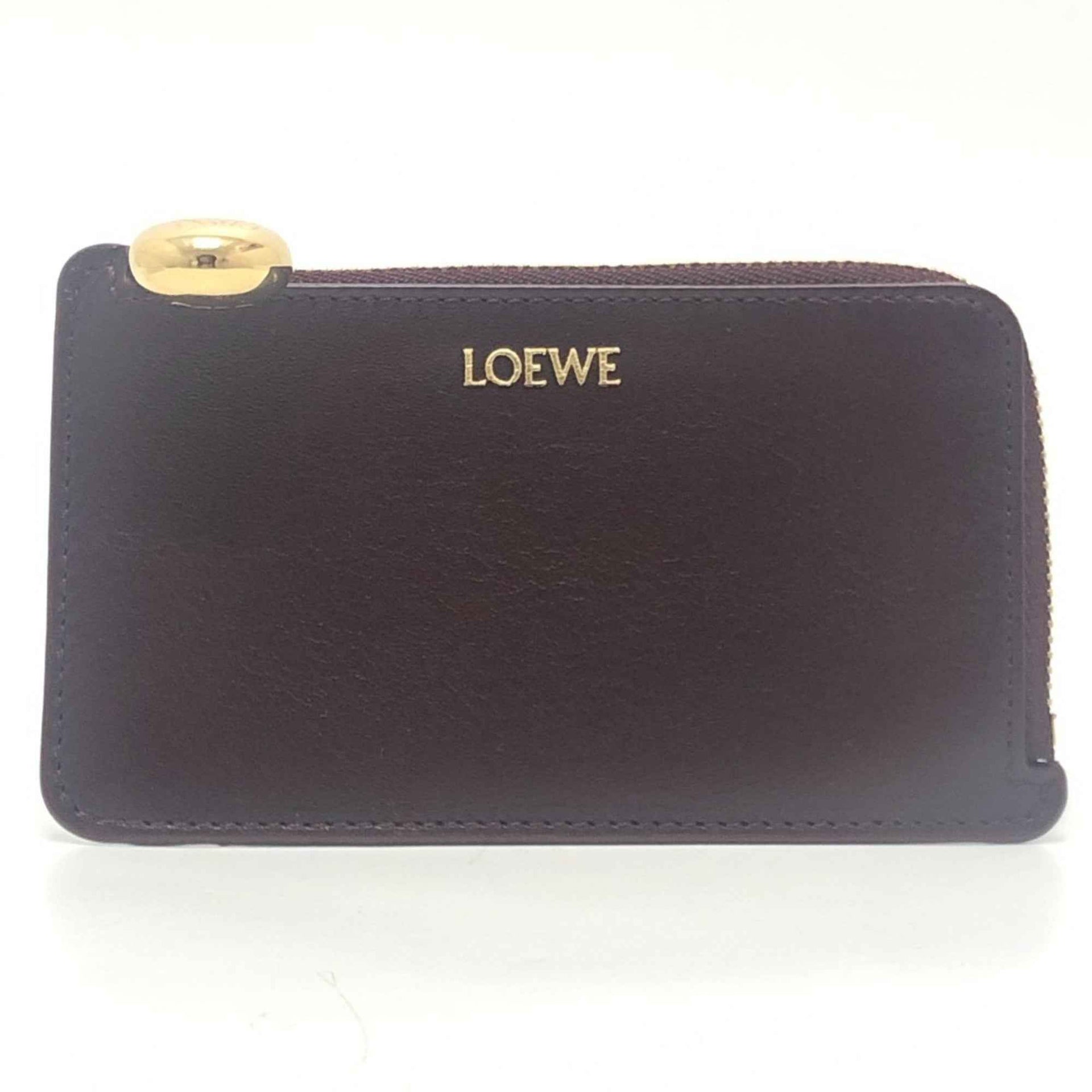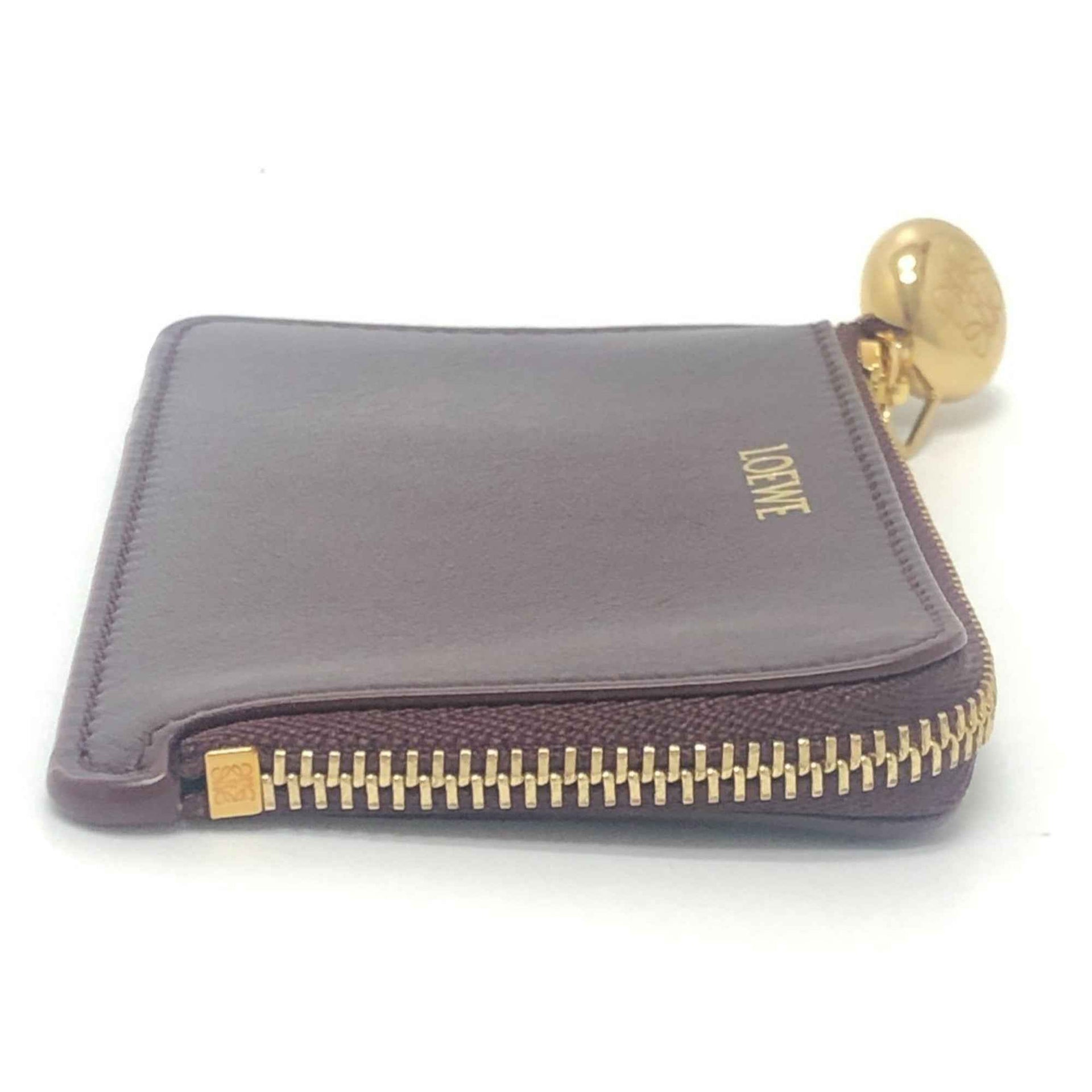 LOEWE Pebble Logo Business Card Case, Fragment L-shaped Zipper Wallet/Coin Leather, Women\'s, Wine Red