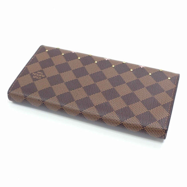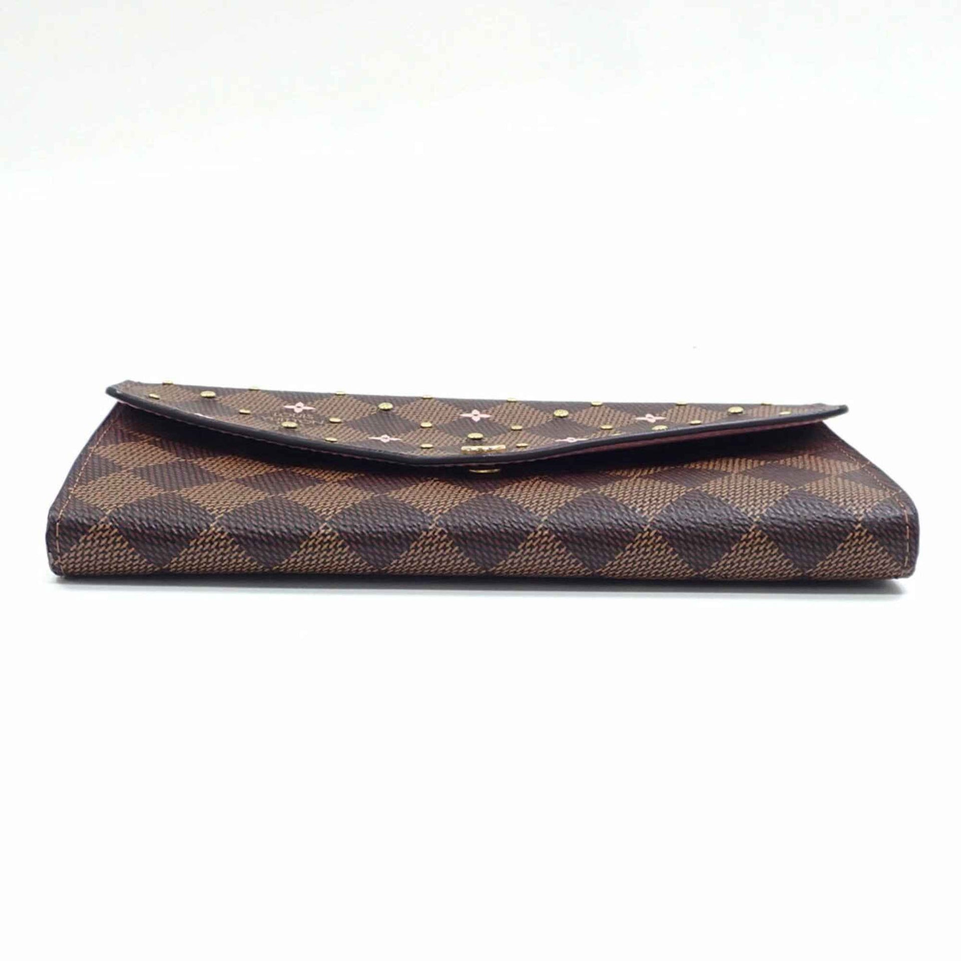 Louis Vuitton Damier Ebene Portefeuille Sarah Bifold Long Wallet (N60476) Women\'s, Pink with Floral Studs