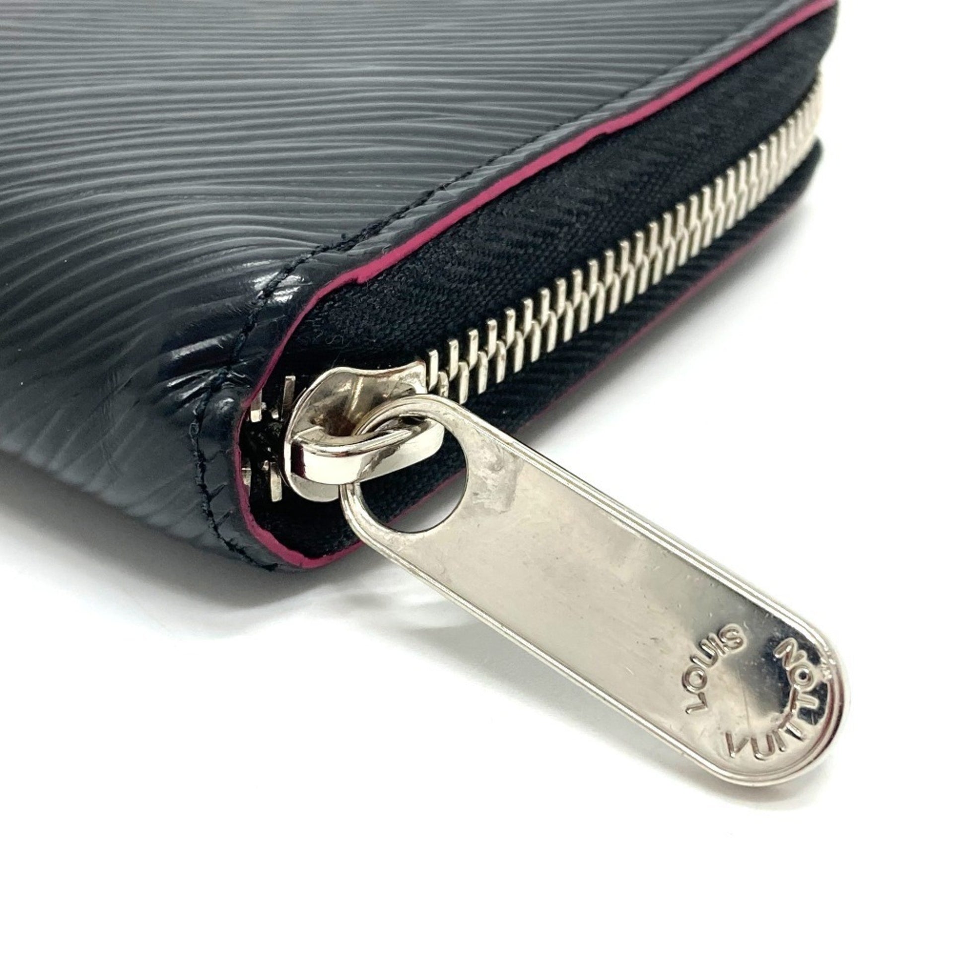 LOUIS VUITTON M64838 Epi Zippy Wallet, Round Zipper Long Wallet in Leather, Women\'s, Noir x Hot Pink
