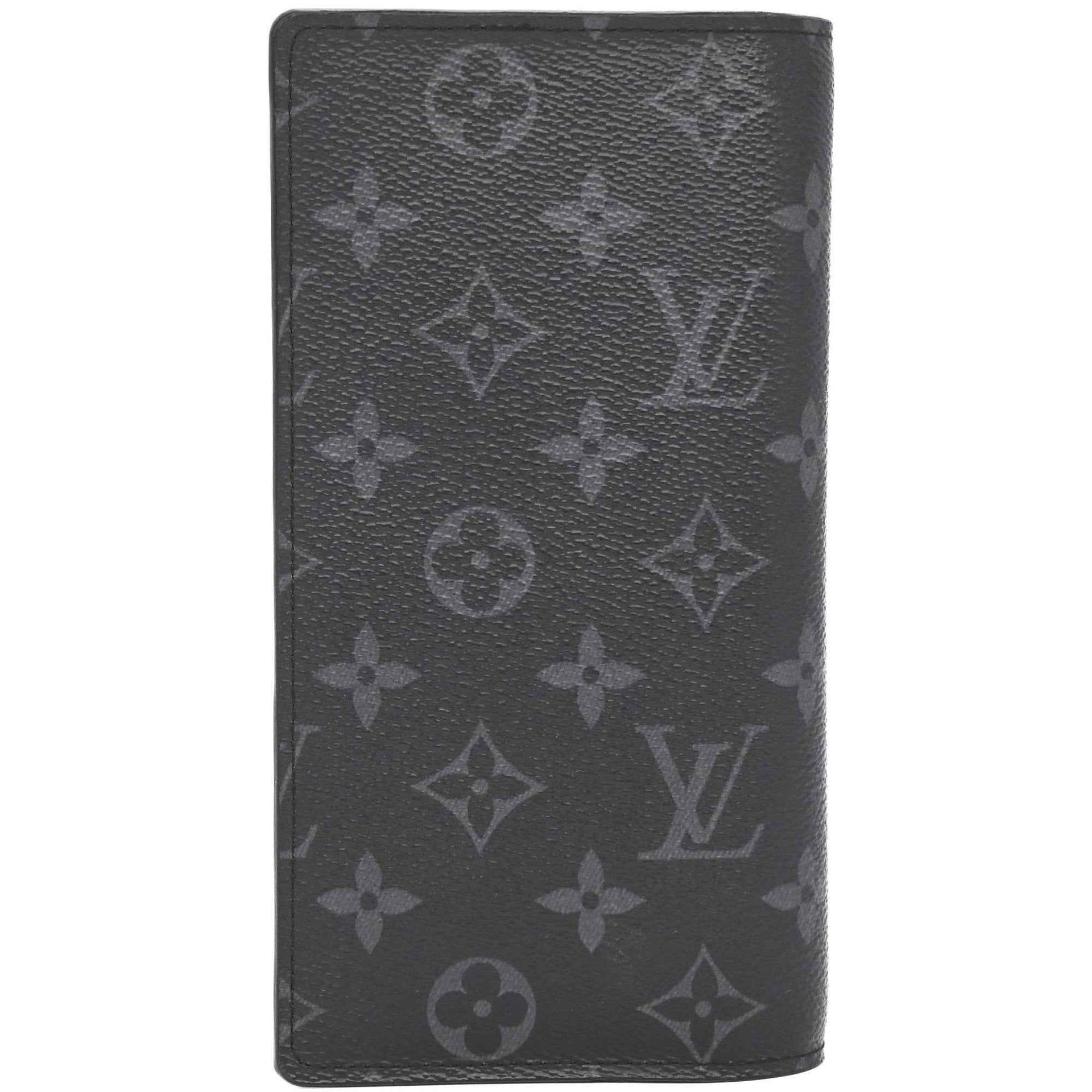LOUIS VUITTON Monogram Eclipse Portefeuille Brazza Long Wallet, Black, M61697