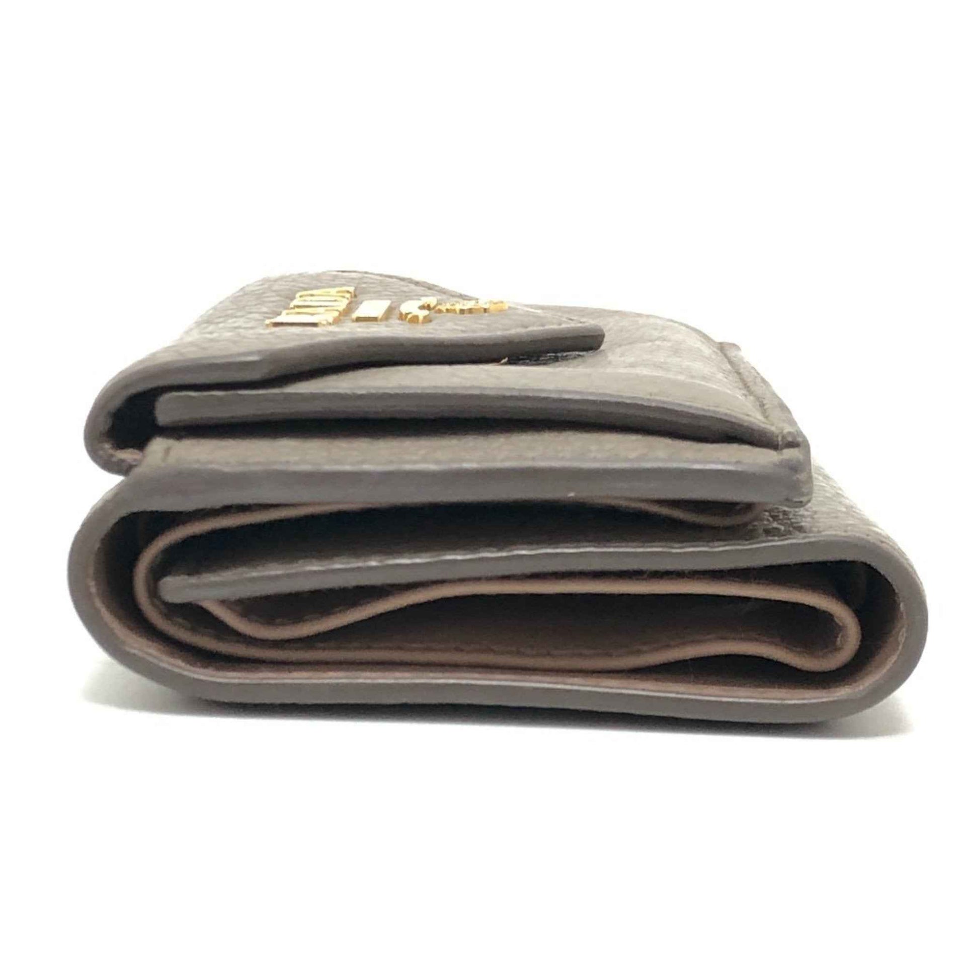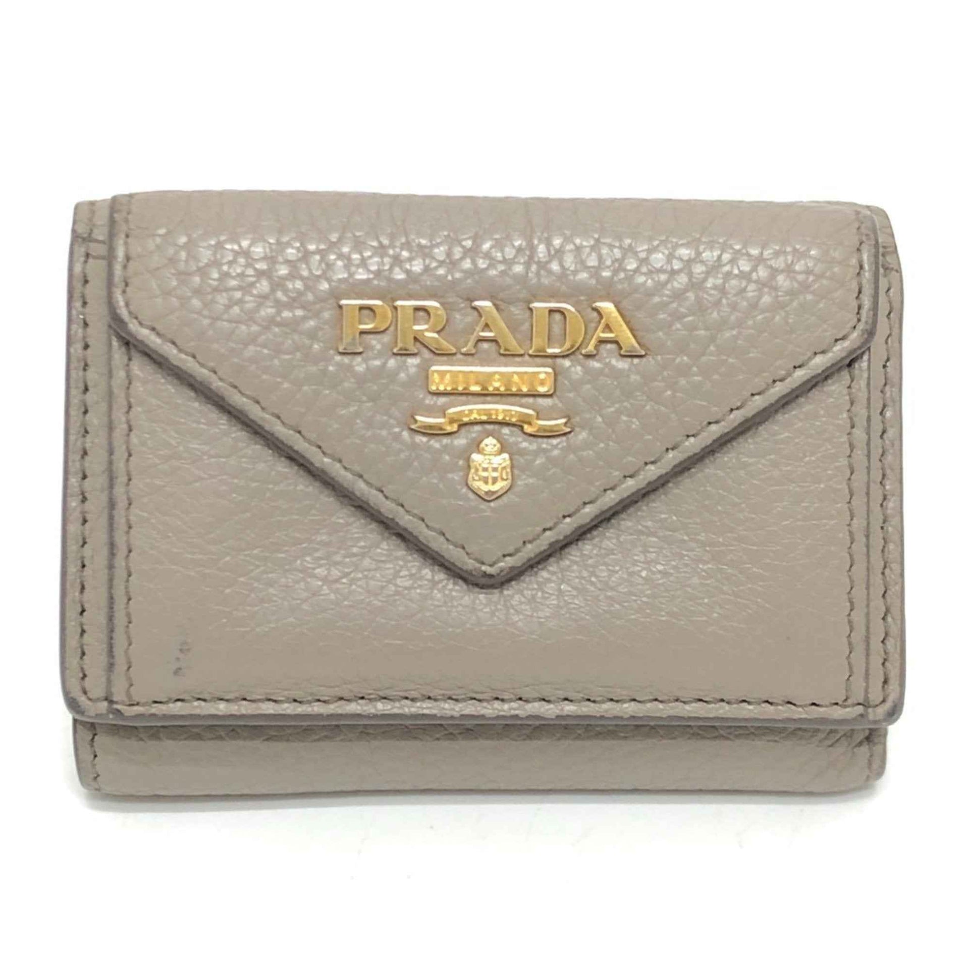 PRADA 1MH021 Logo Wallet, Compact Mini Tri-fold Leather, Women\'s, Beige