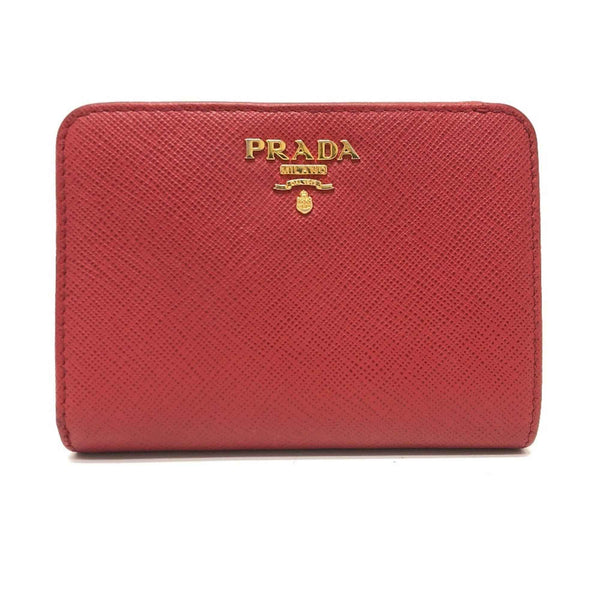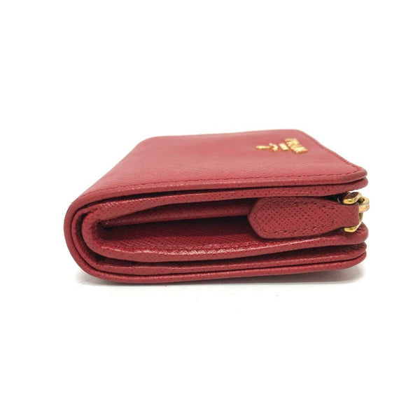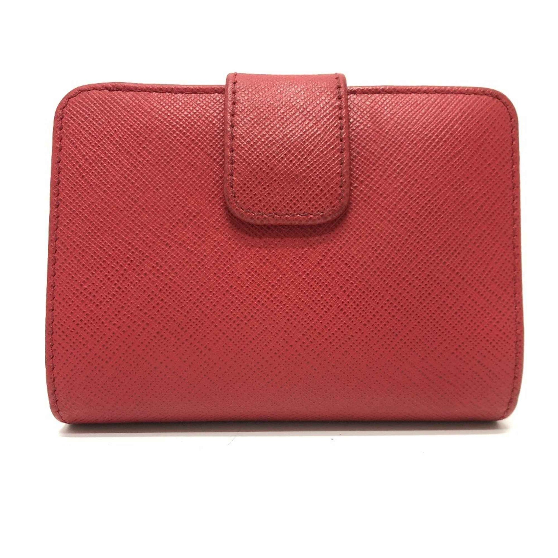 PRADA 1ML018 Logo Bifold Wallet in Saffiano Leather, Red, Women\'s