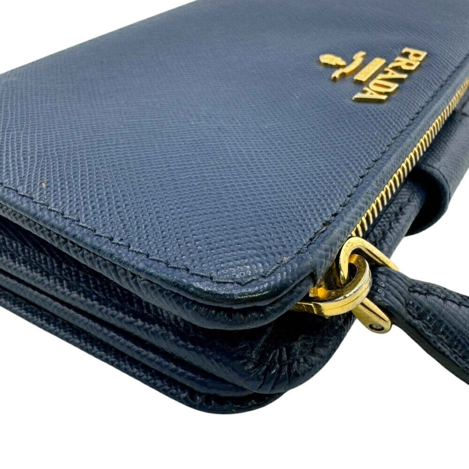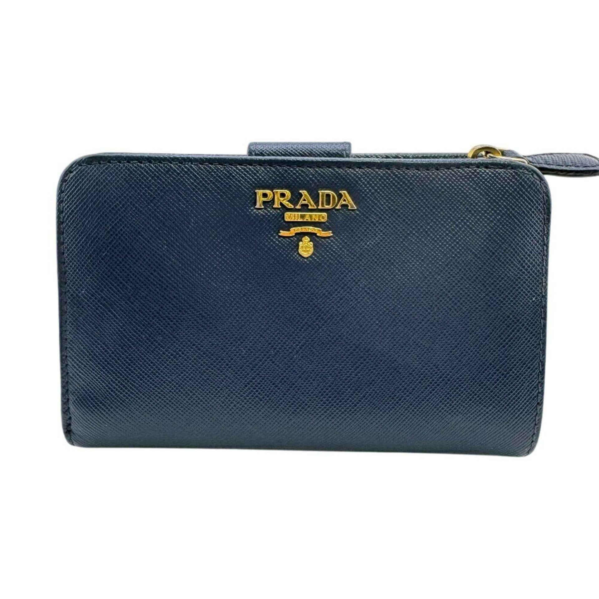 PRADA 1ML225 Compact Wallet, Saffiano Bifold Blue