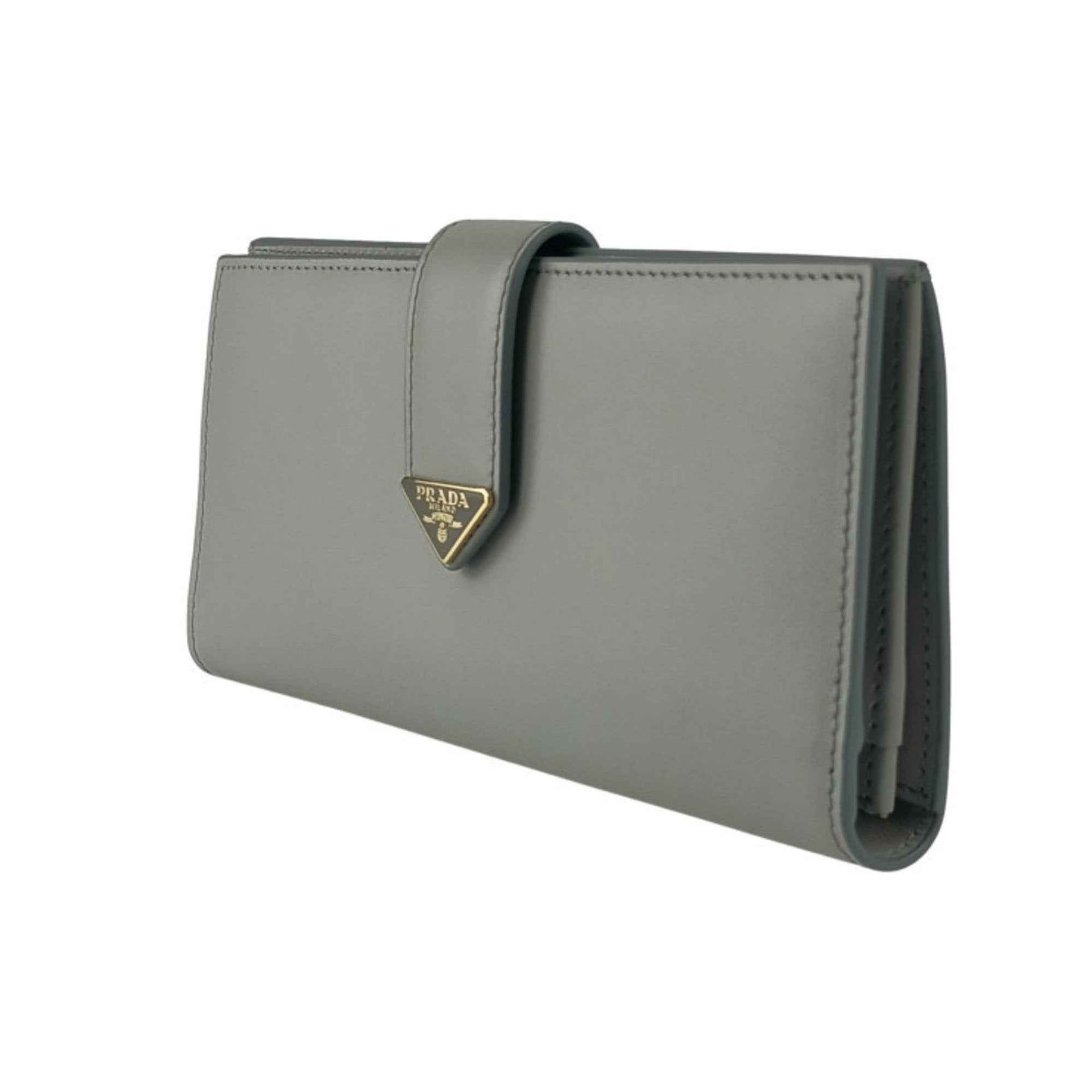 PRADA City Calfskin Tab Wallet 1MV025 Light Gray Leather Women\'s Bifold Long