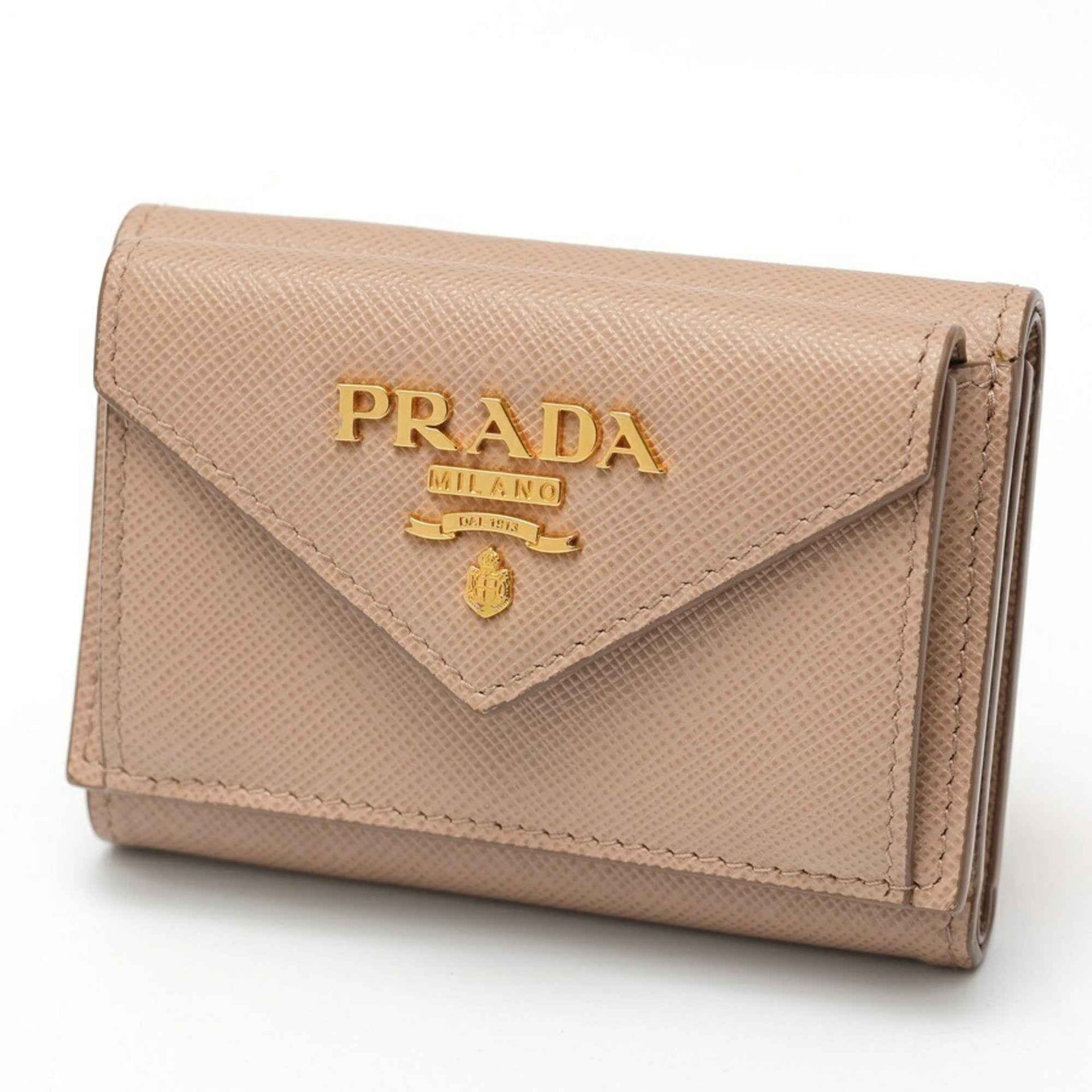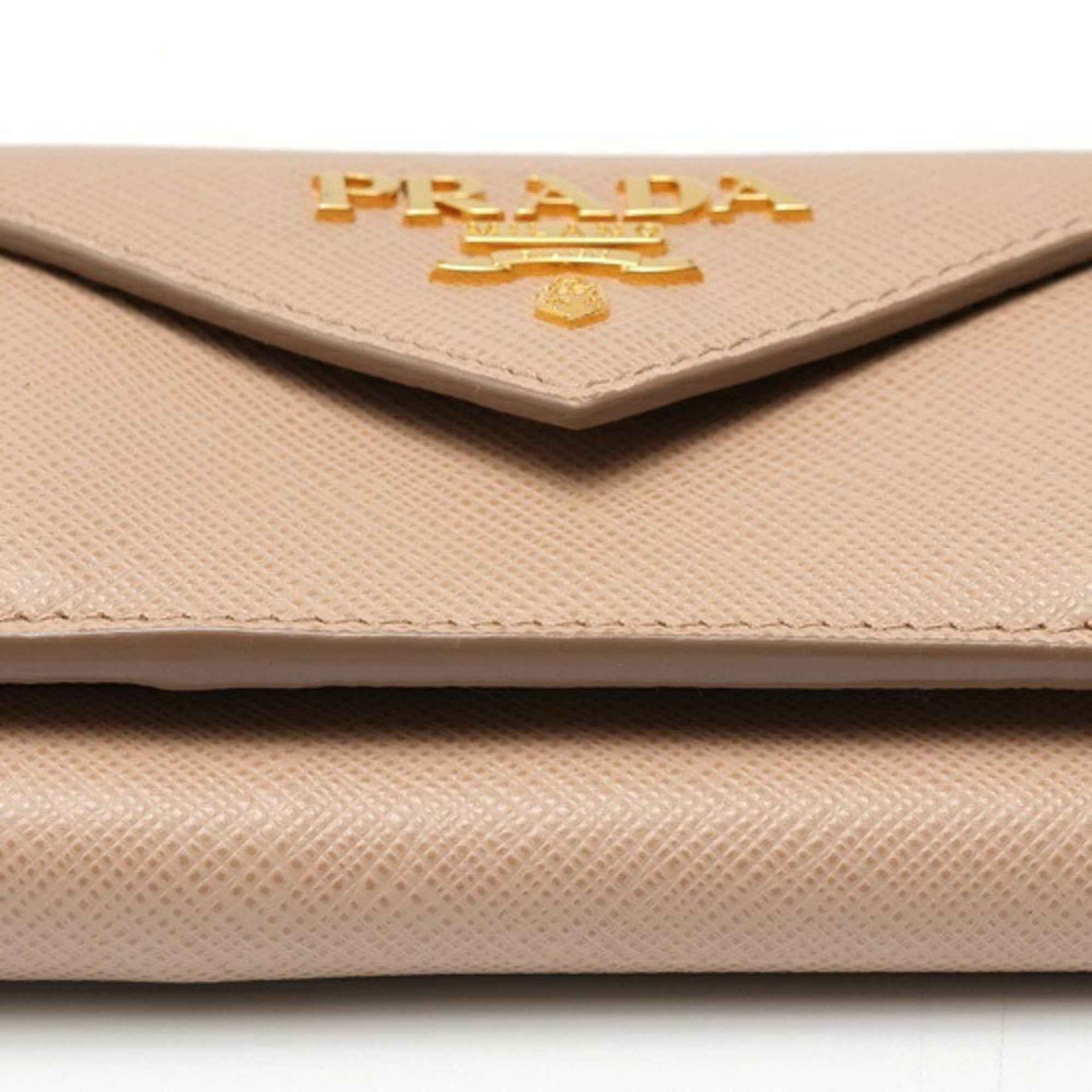 PRADA Compact Wallet Trifold 1MH021 Saffiano Leather Pink Beige E-159414