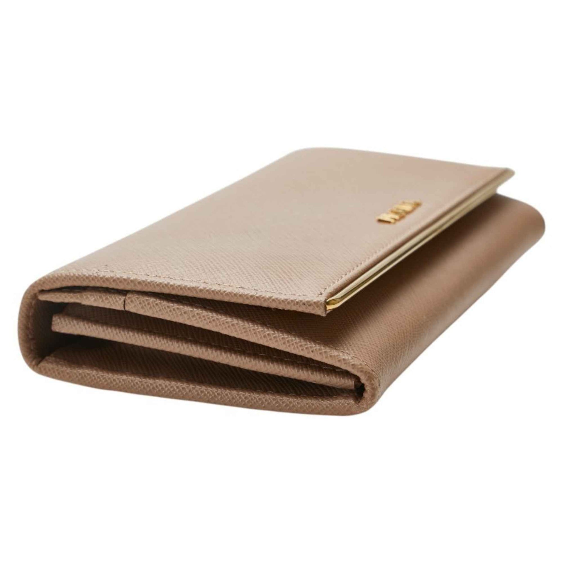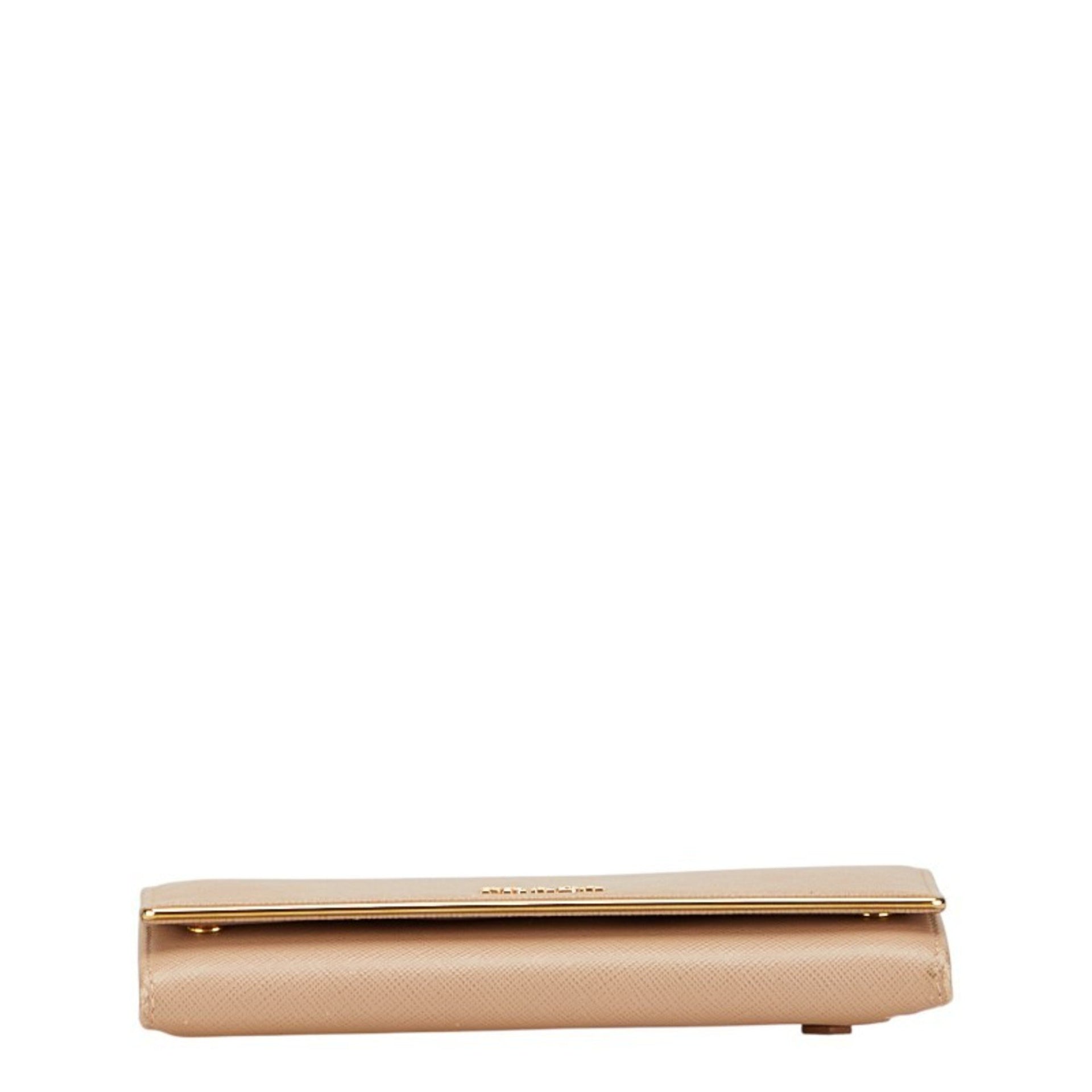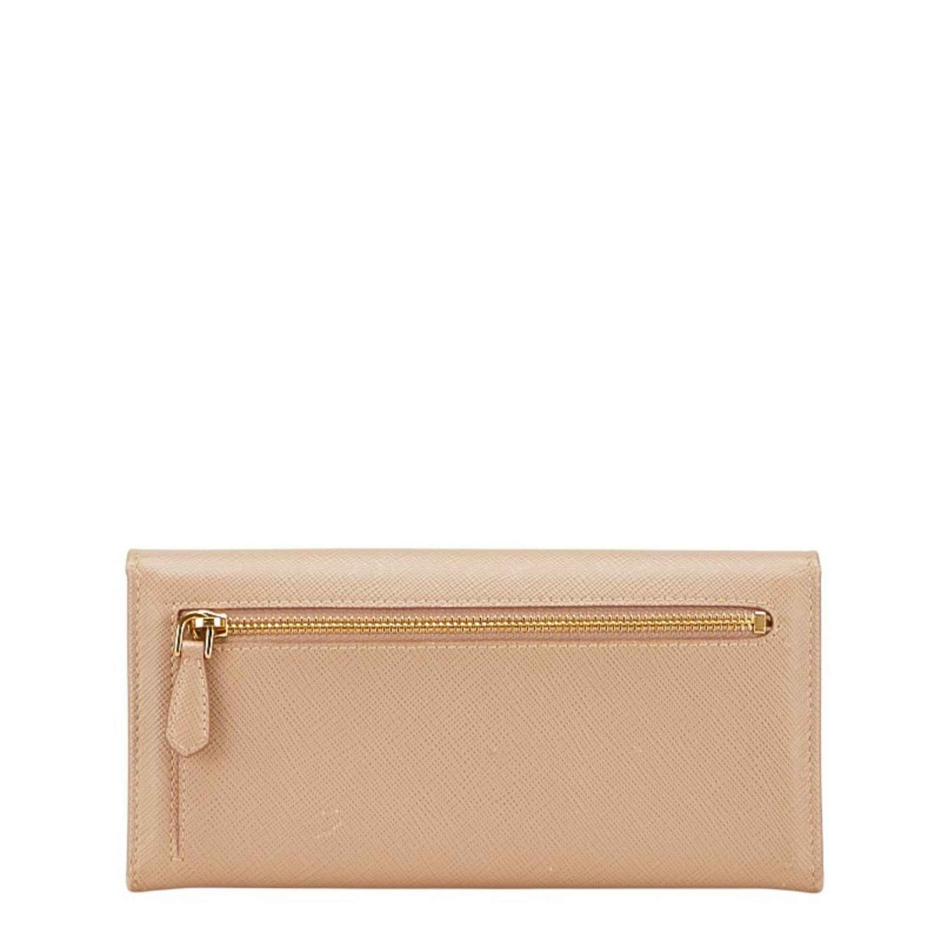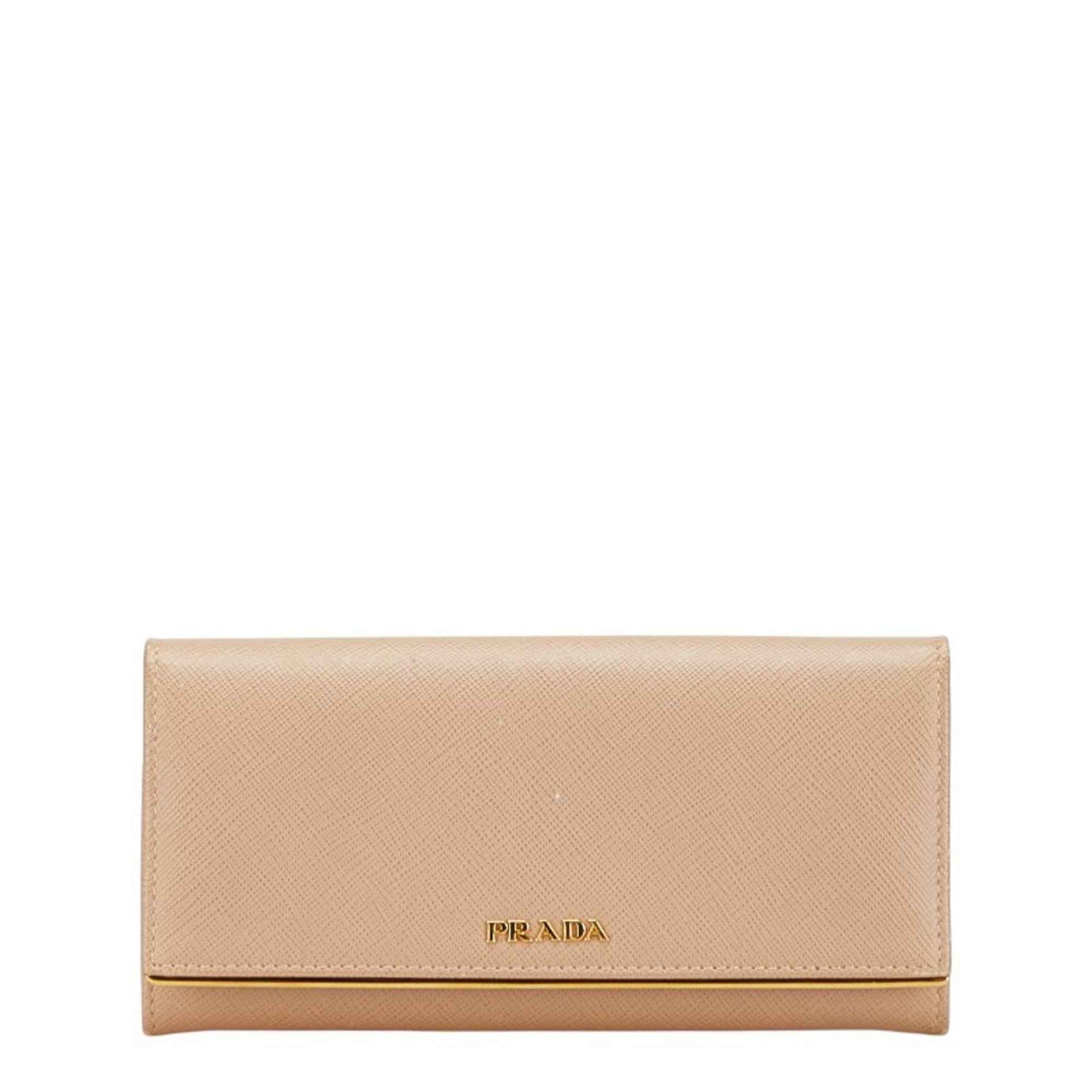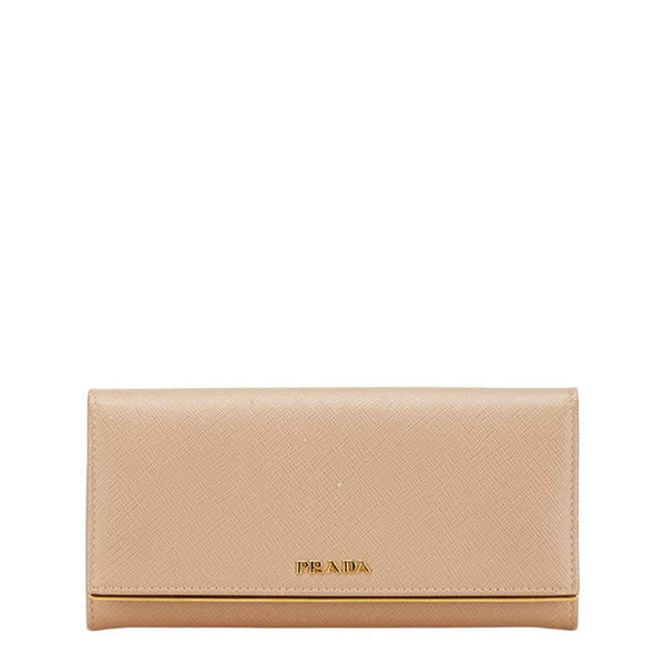 Prada logo long wallet in beige Saffiano leather for women.