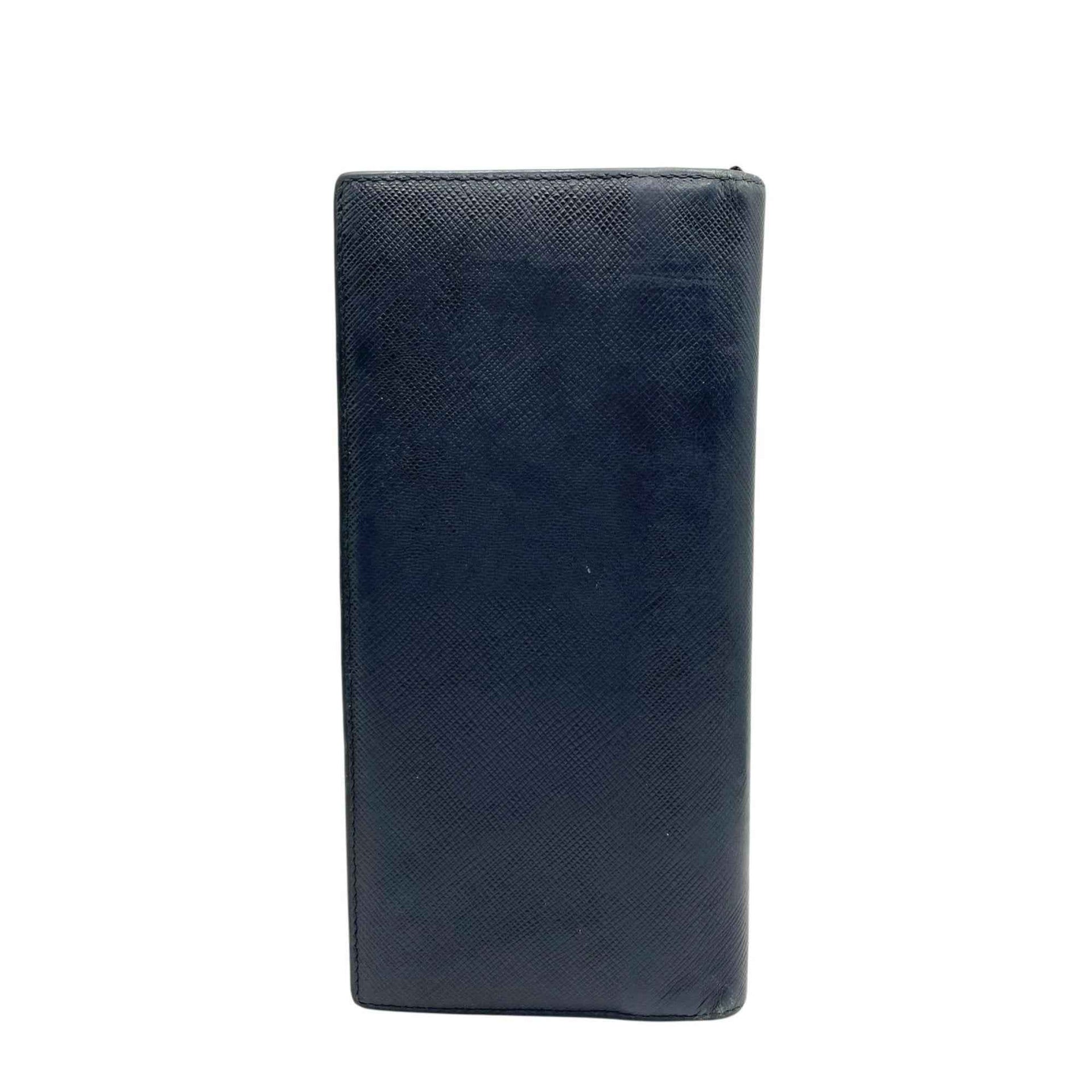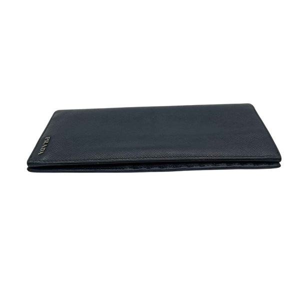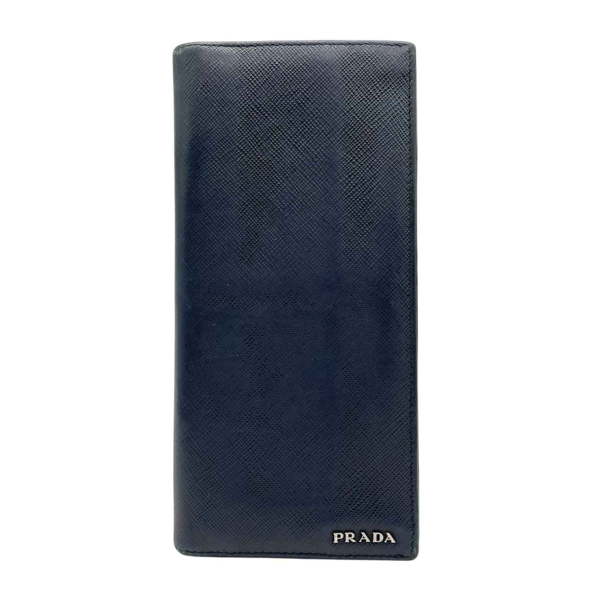 Prada Men\'s Navy Blue Saffiano Leather Long Wallet with Silver Hardware and Logo, 2MV836, M1