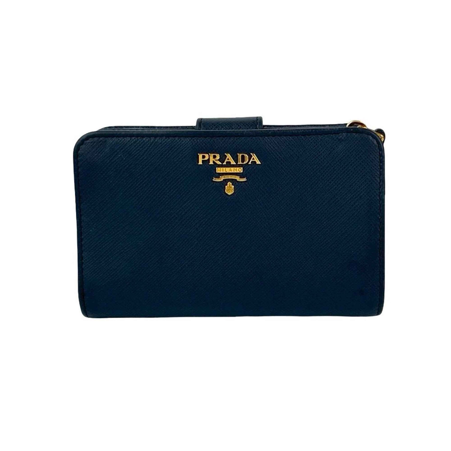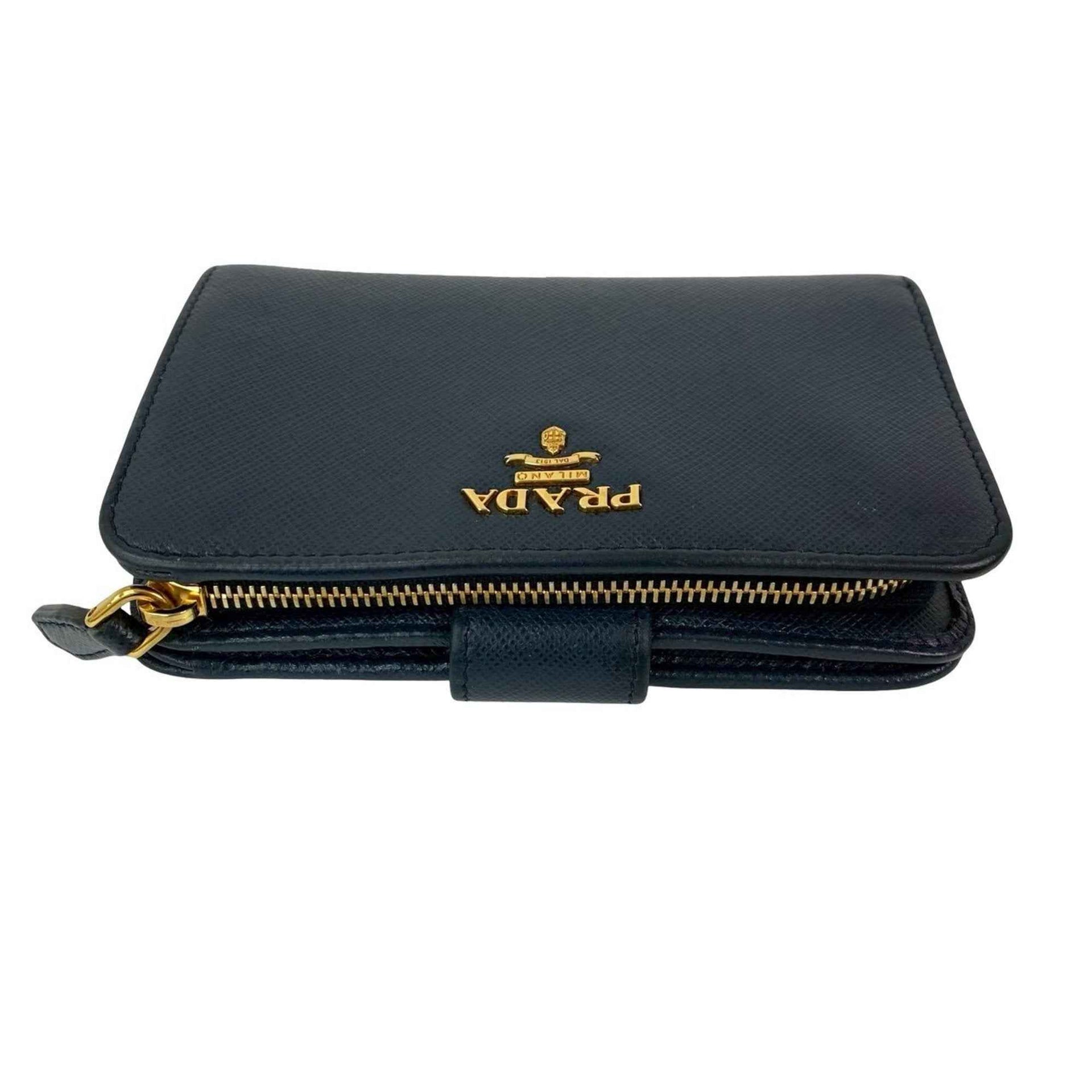 PRADA Prada logo hardware, Saffiano leather zippered bifold wallet with card case, navy blue, 26374