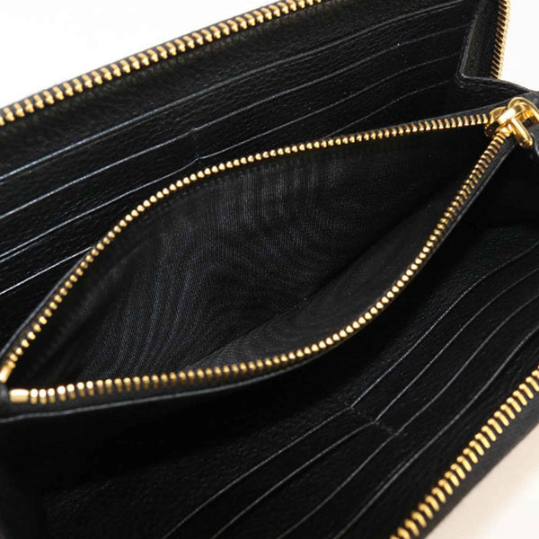 PRADA Prada Long Wallet with Round Zipper PR95198 in Vitello Leather (1ML506) Black