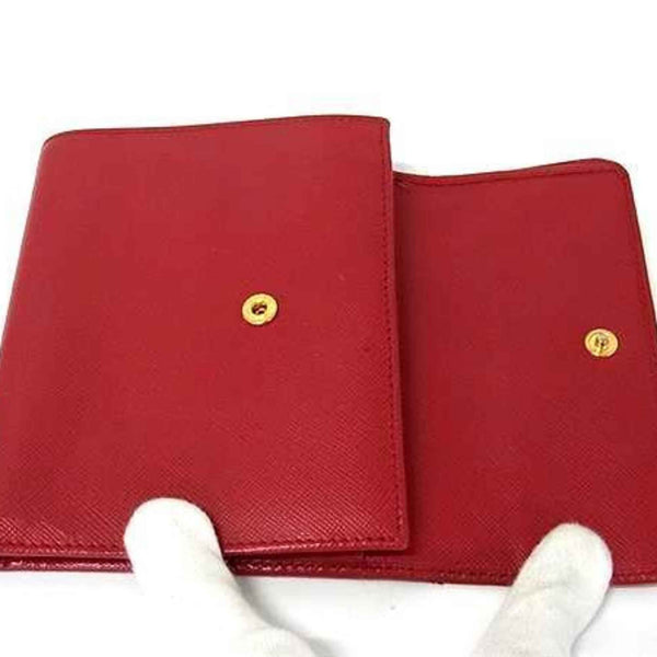 PRADA Prada Tri-fold Wallet in Red Saffiano Leather for Women