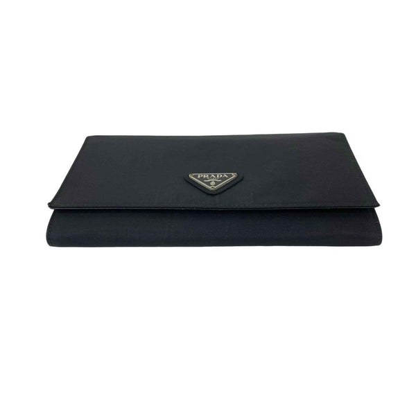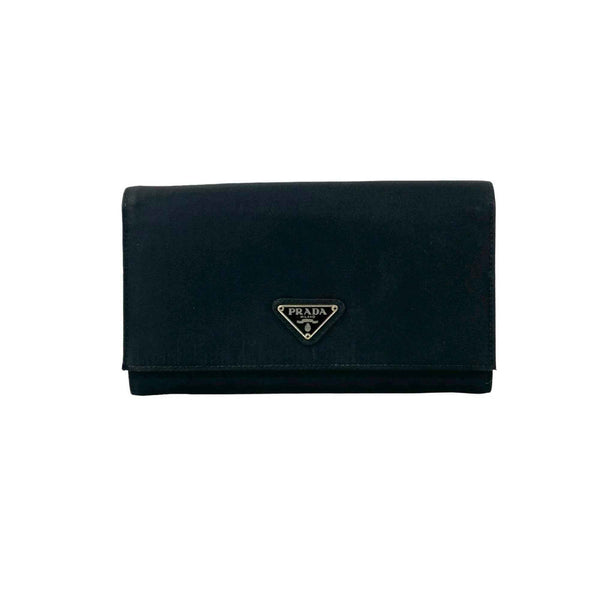 PRADA Prada Triangle Logo Hardware Nylon and Saffiano Leather Bifold Wallet, Black, 10313