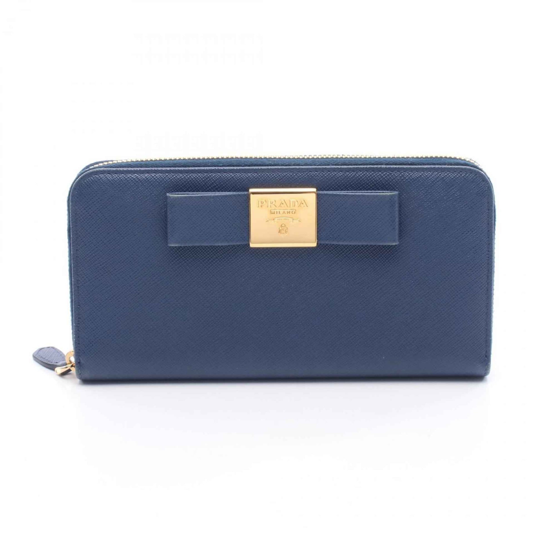 Prada PRADA Women\'s Leather Round Long Wallet, Blue, 1ML506