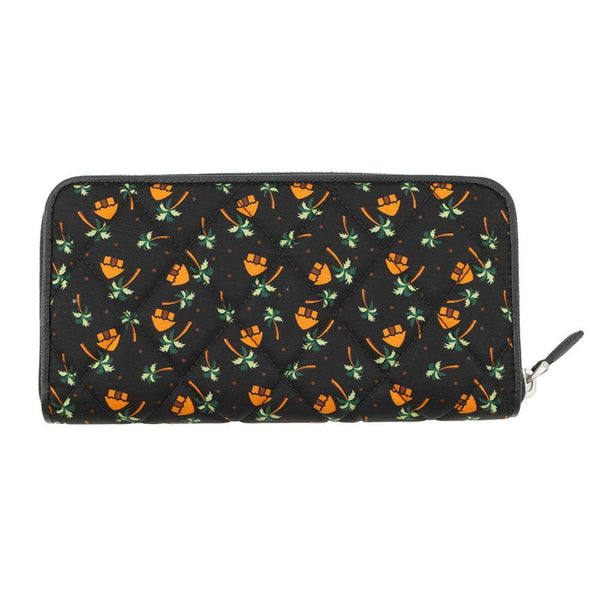 Prada Quilted Round Long Wallet with Palm Tree Design, Black