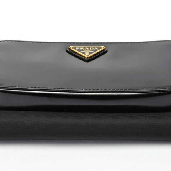 Prada Re-Nylon Shoulder Wallet Bag 1MT020, Glass Leather and Nylon, Black, E-159103