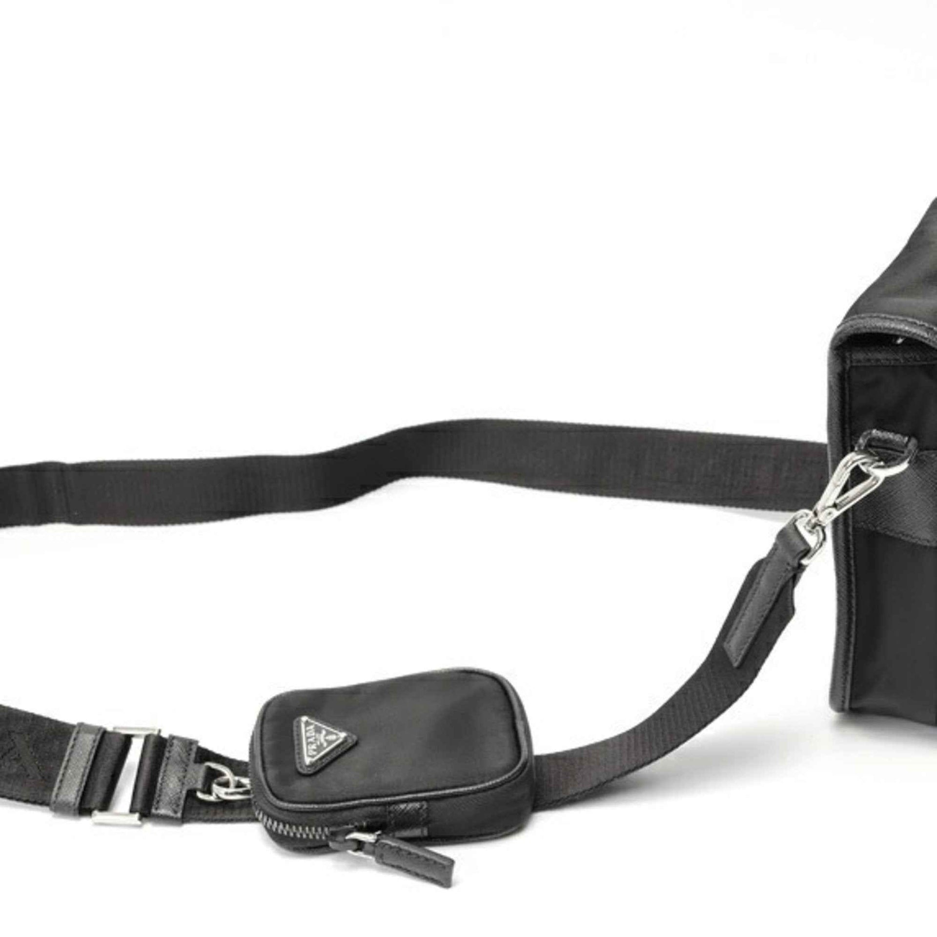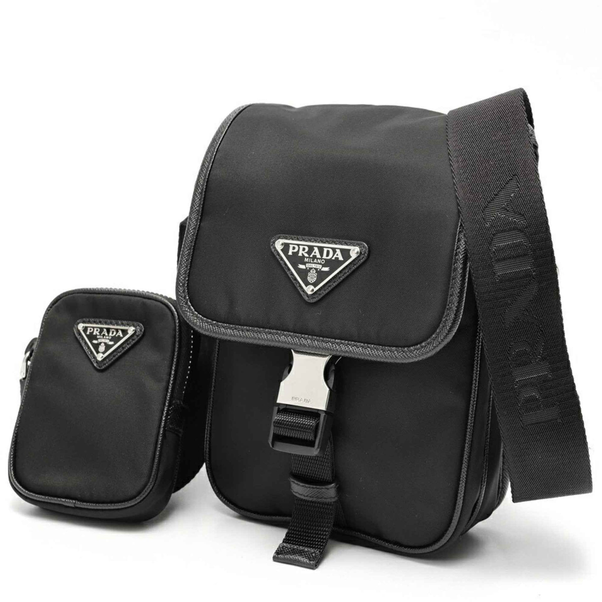 Prada Re-Nylon x Saffiano Leather Mini Shoulder Phone Holder 2VD043 Black (Nero) S-159028