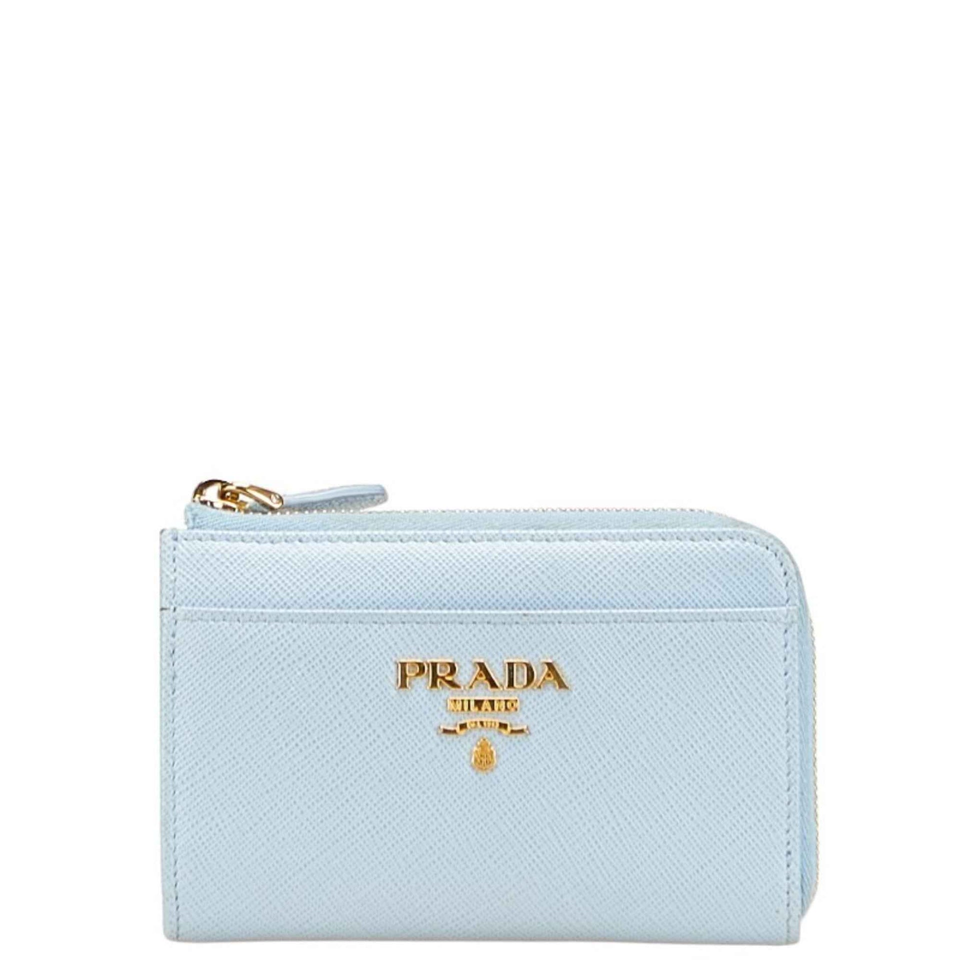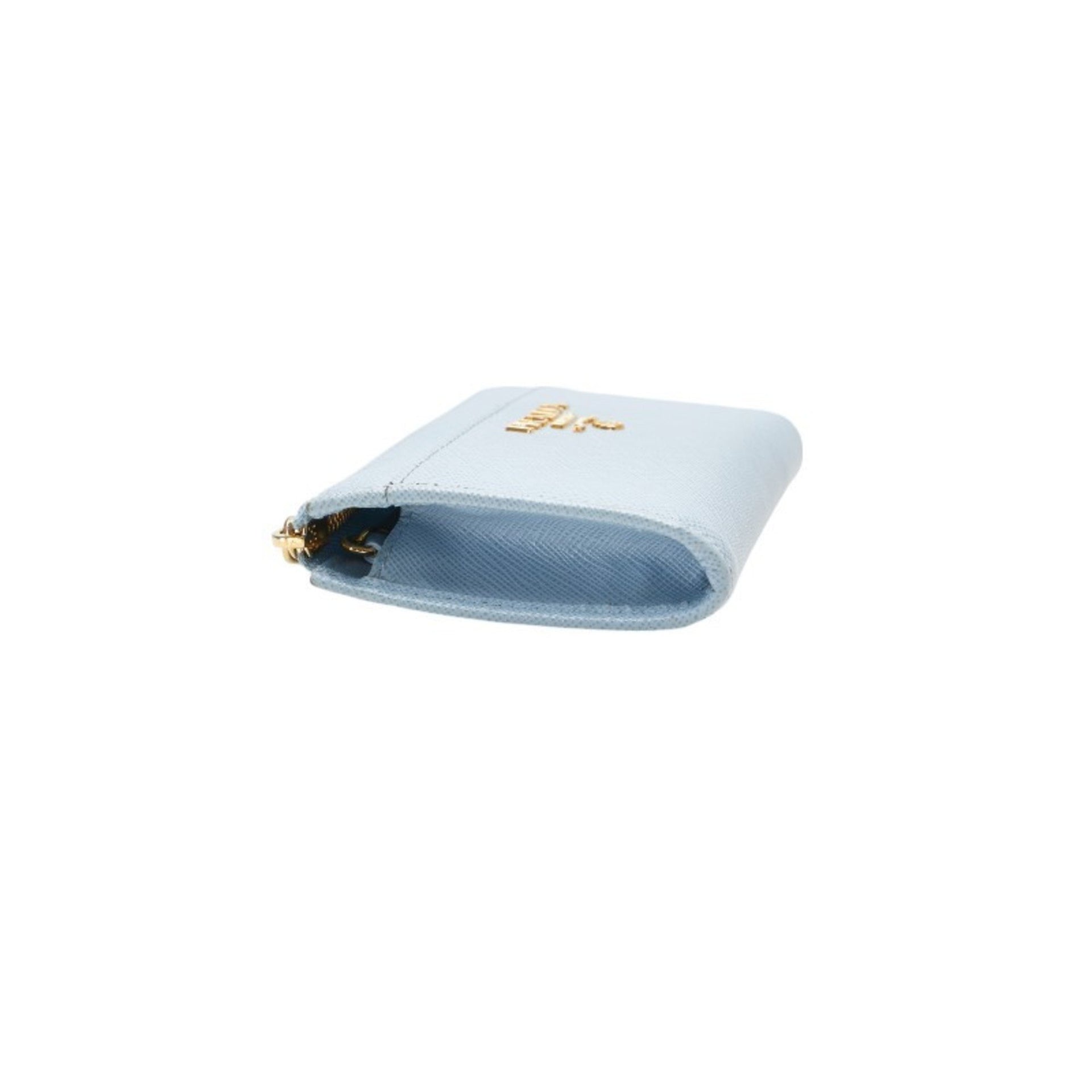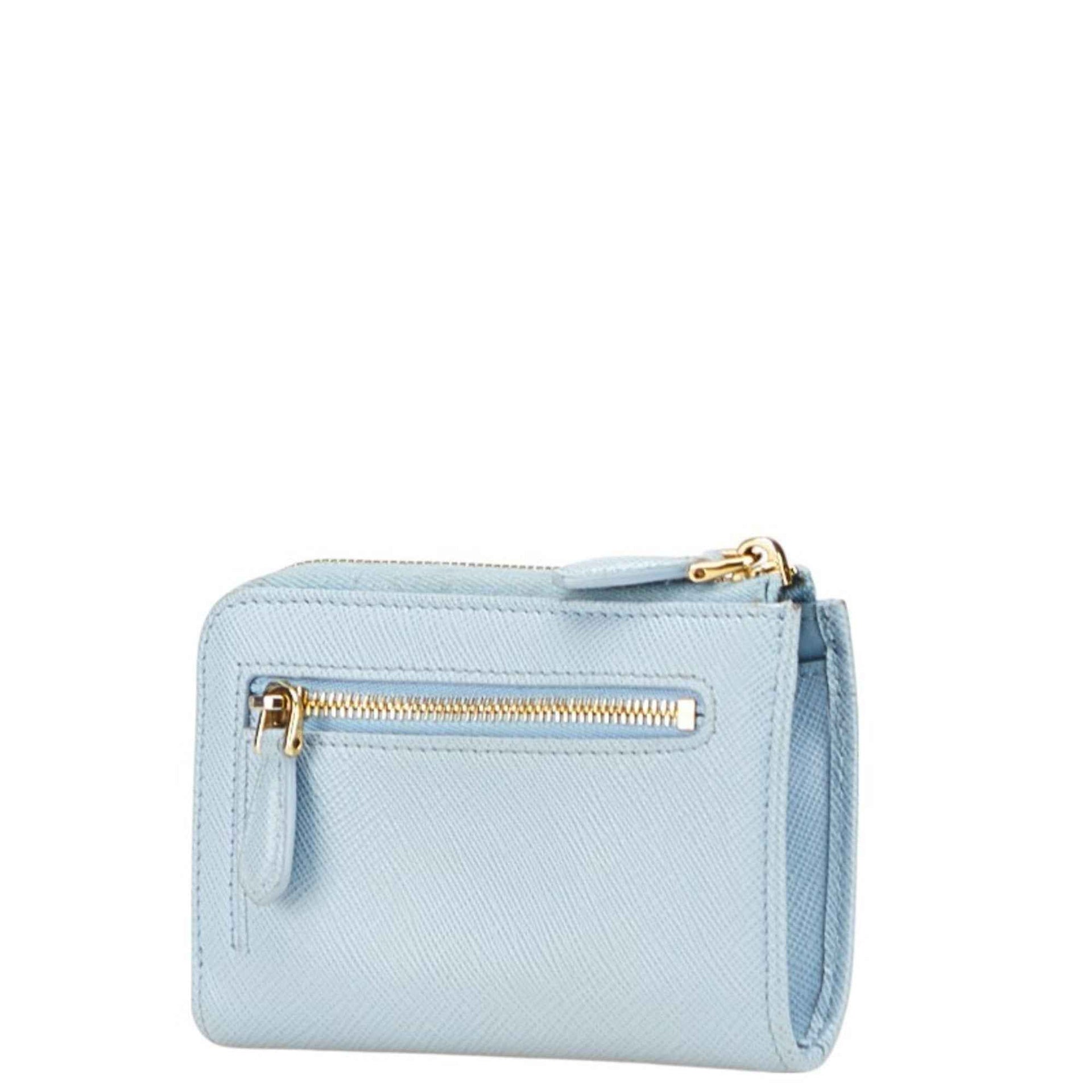 Prada Saffiano L-Zip Compact Tri-Fold Wallet in Baby Blue Leather for Women