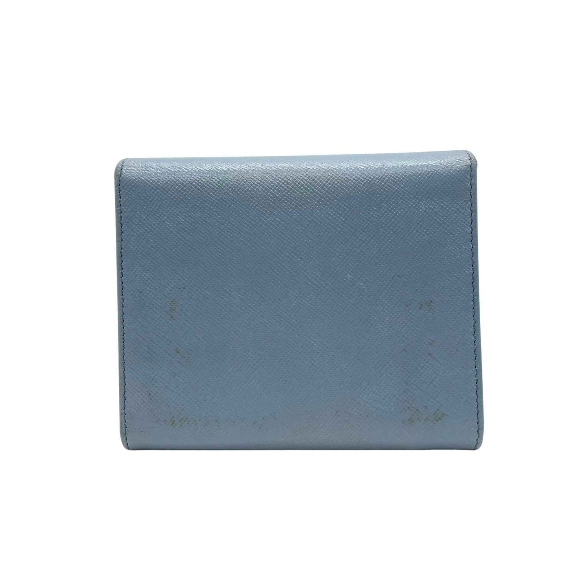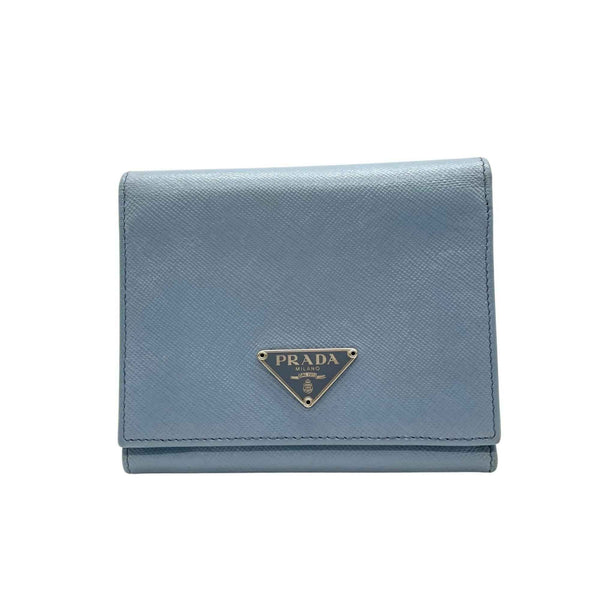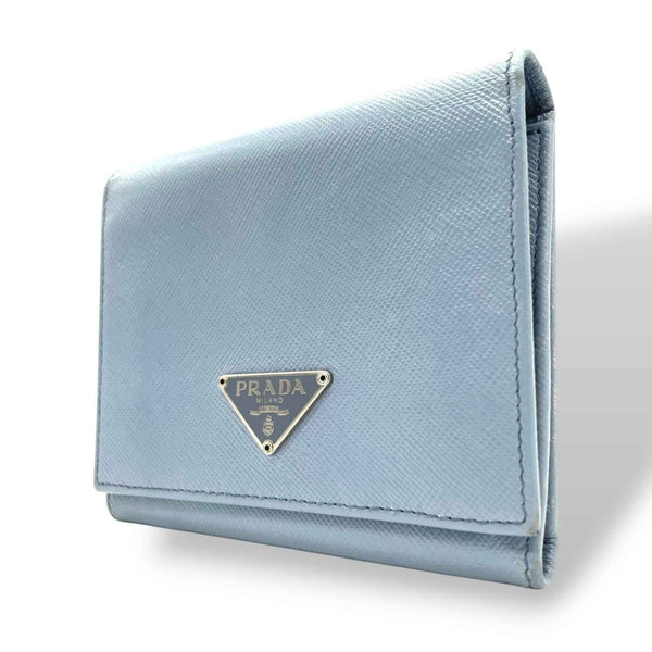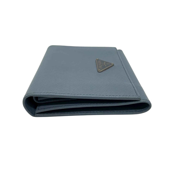Prada Saffiano Leather Bi-fold Wallet with Triangle Logo, Light Blue, Women\'s Compact M5