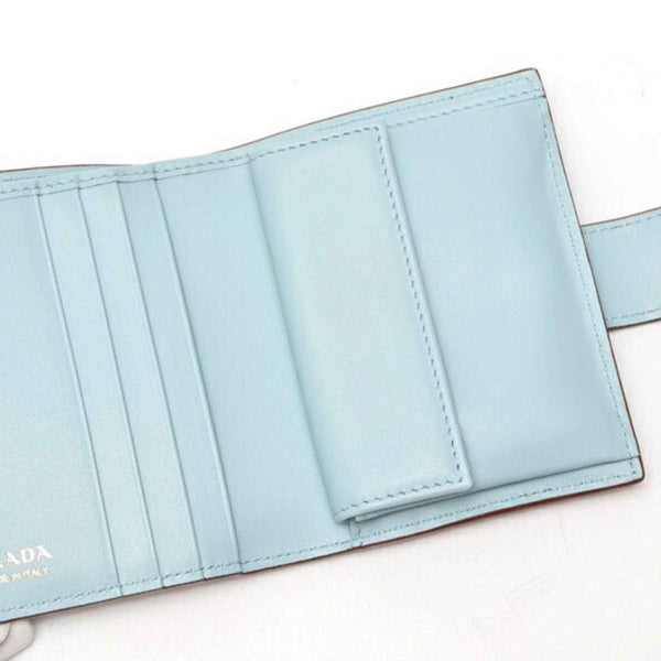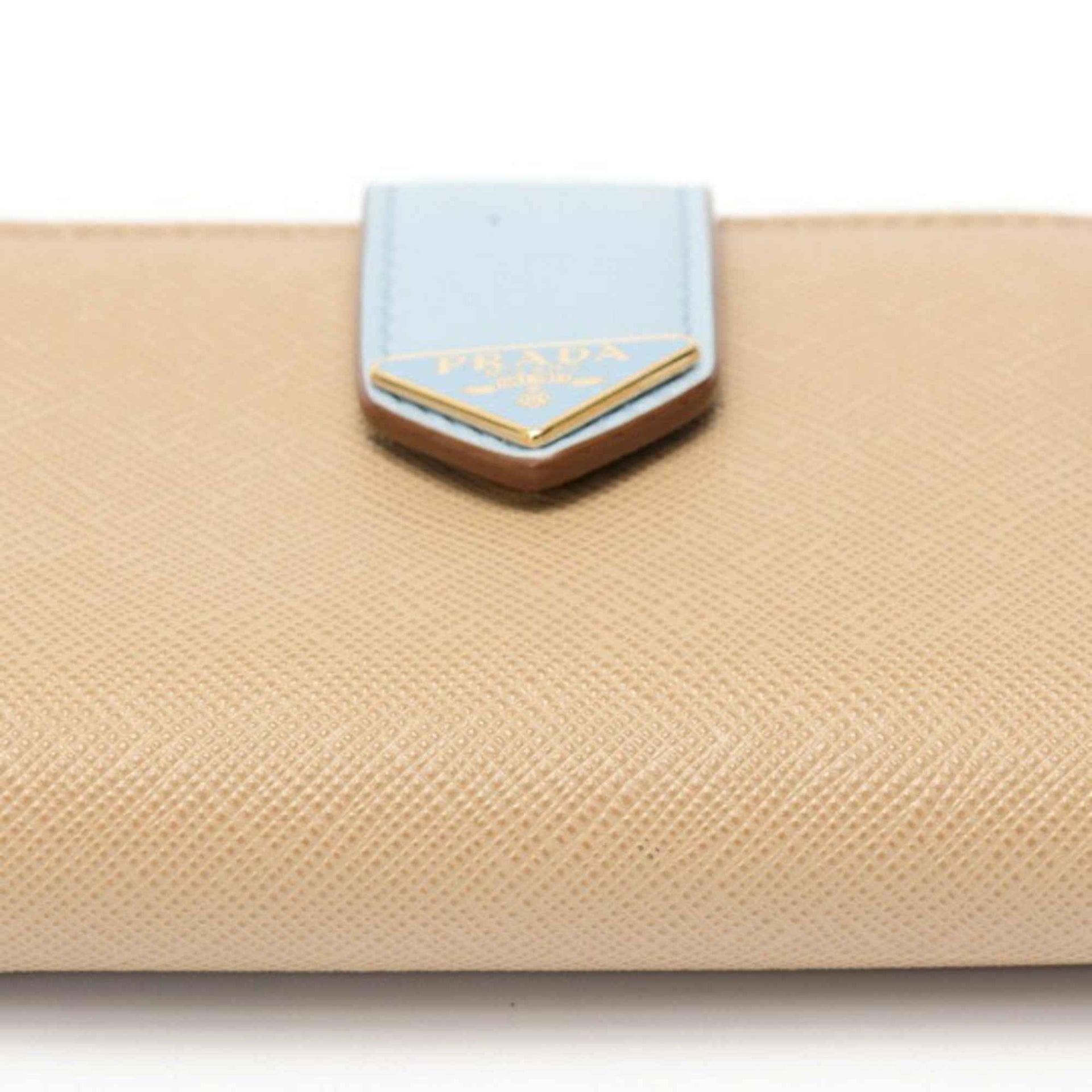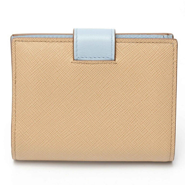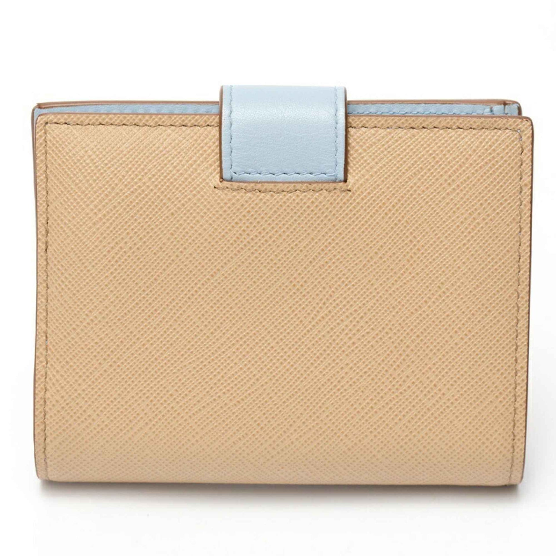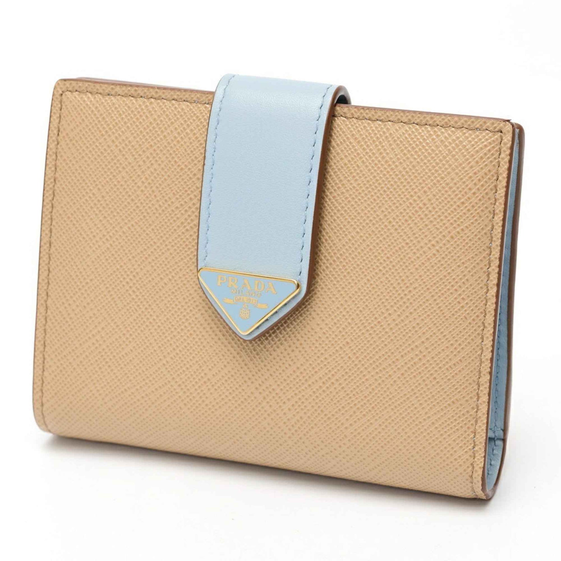 PRADA Saffiano Tab Folding Wallet Triangle 1MV204 Leather Beige Light Blue S-158824