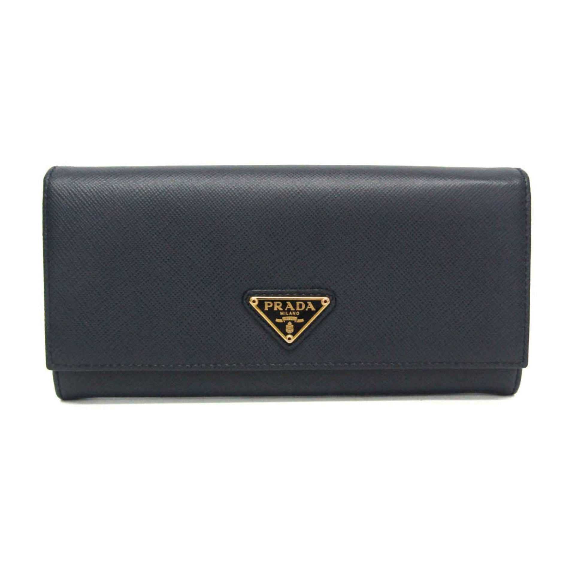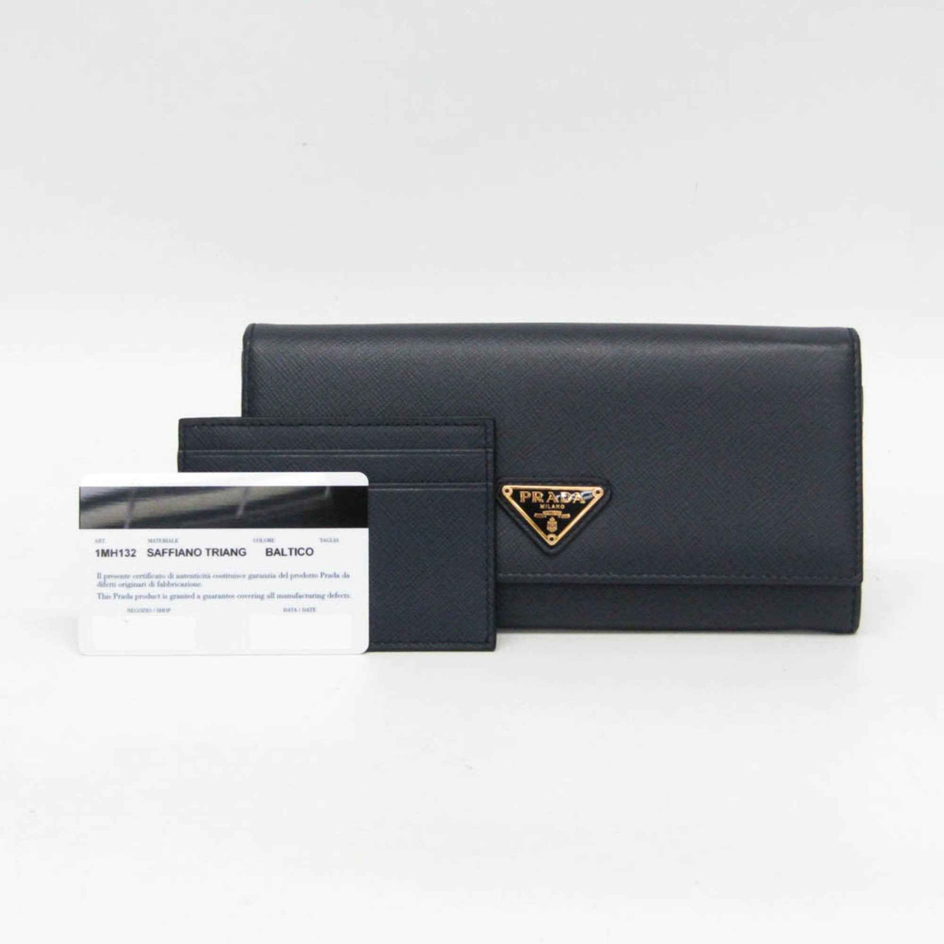 Prada SAFFIANO TRIANG 1MH132 Women\'s Leather Long Wallet (bi-fold) Navy