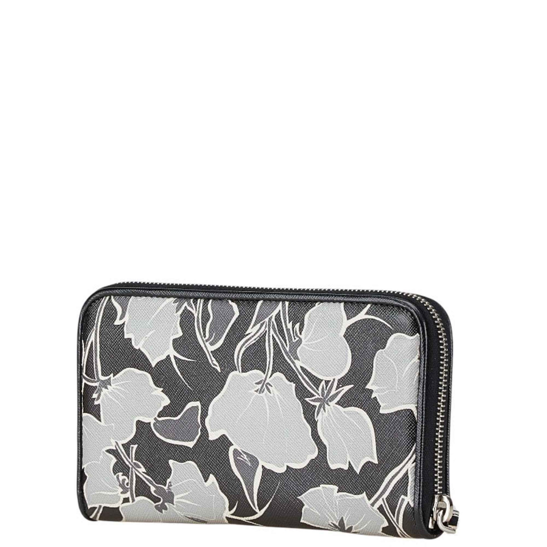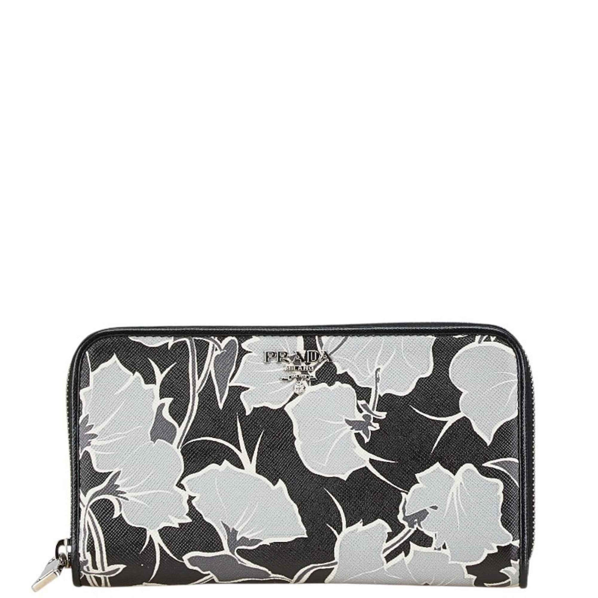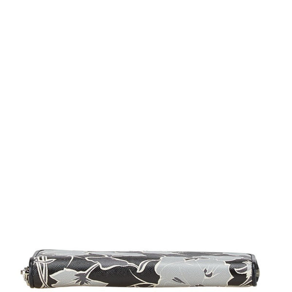Prada Saffiano Zip-Around Long Wallet 1M0506 Black/Grey Leather Women\'s PRADA
