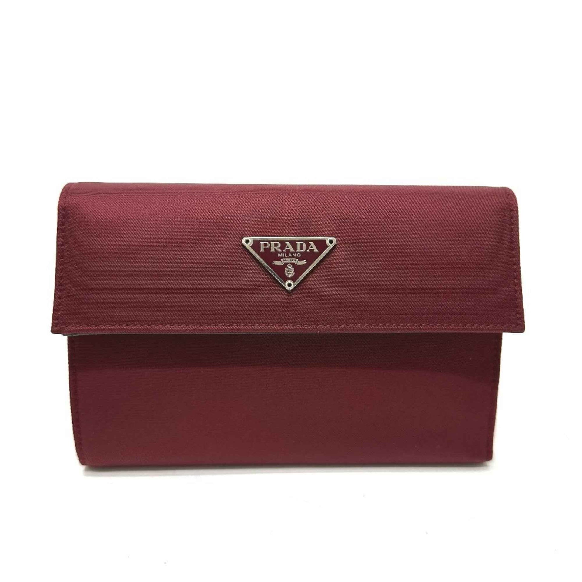 PRADA Triangle Logo Compact Wallet, Tri-fold Nylon and Saffiano Leather, Men\'s, Wine Red