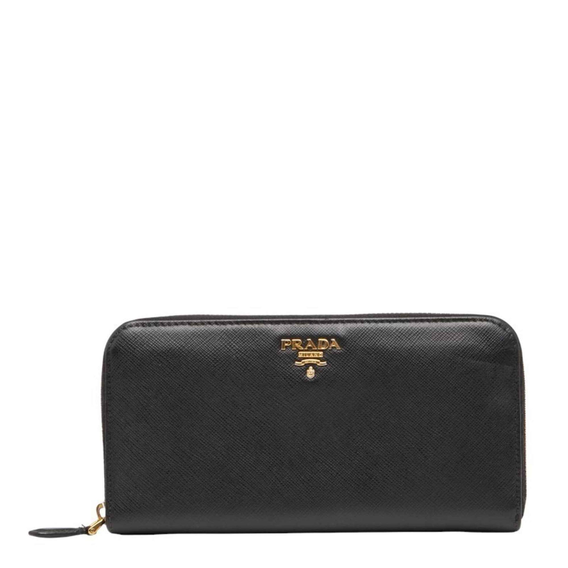 Prada Women\'s Round Zip Long Wallet 1ML506 Pink Saffiano Leather