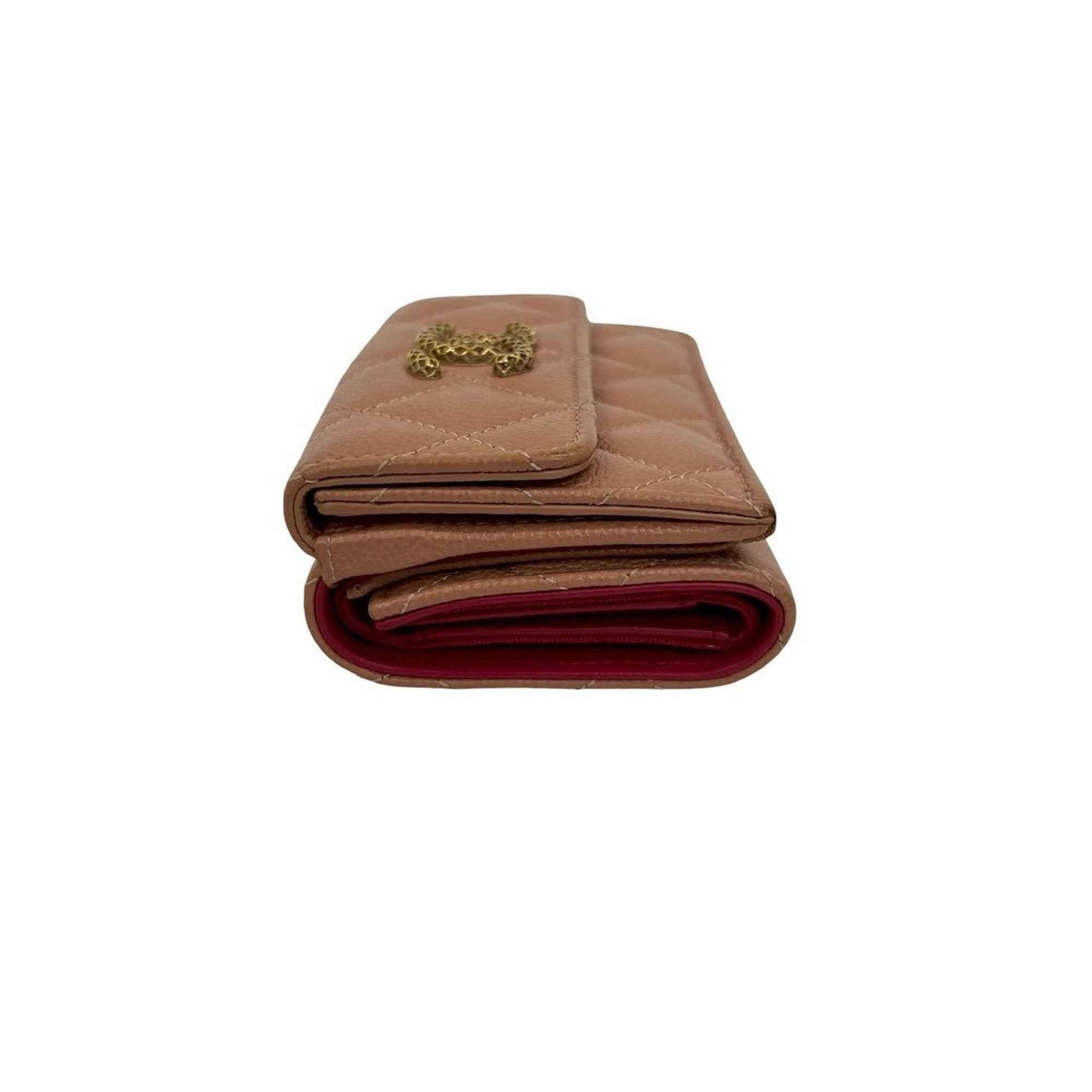 Random number CHANEL Matelasse Coco Caviar Leather Tri-fold Wallet Mini 23406