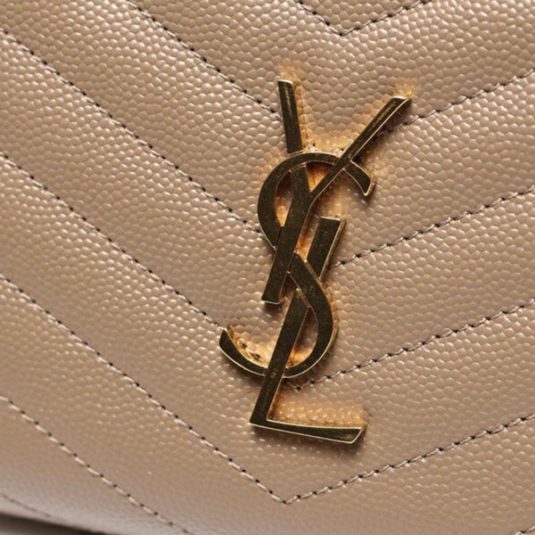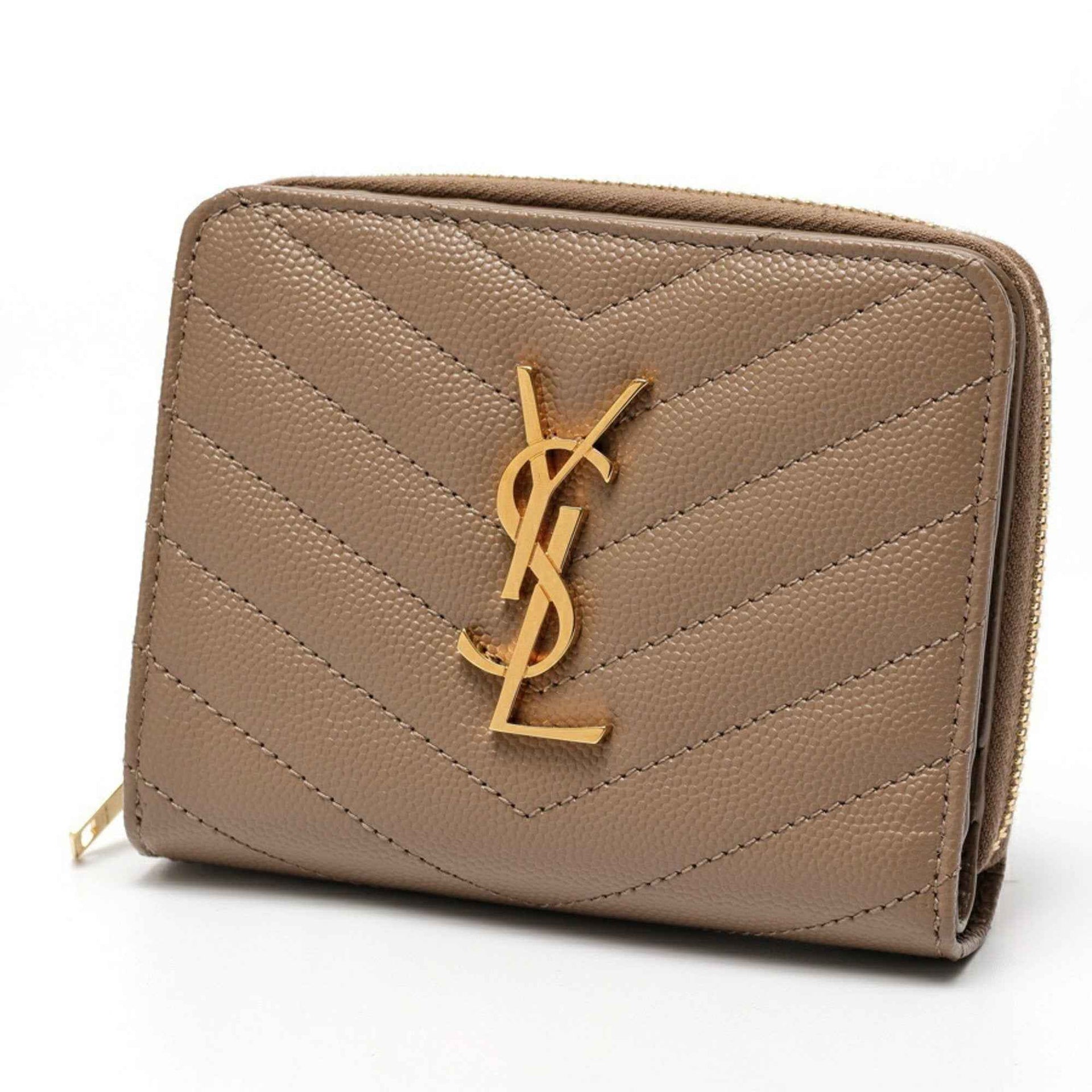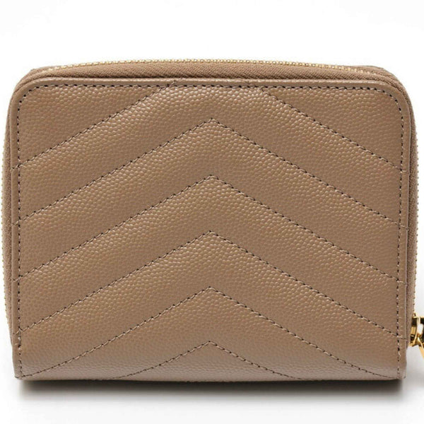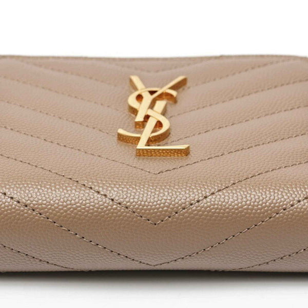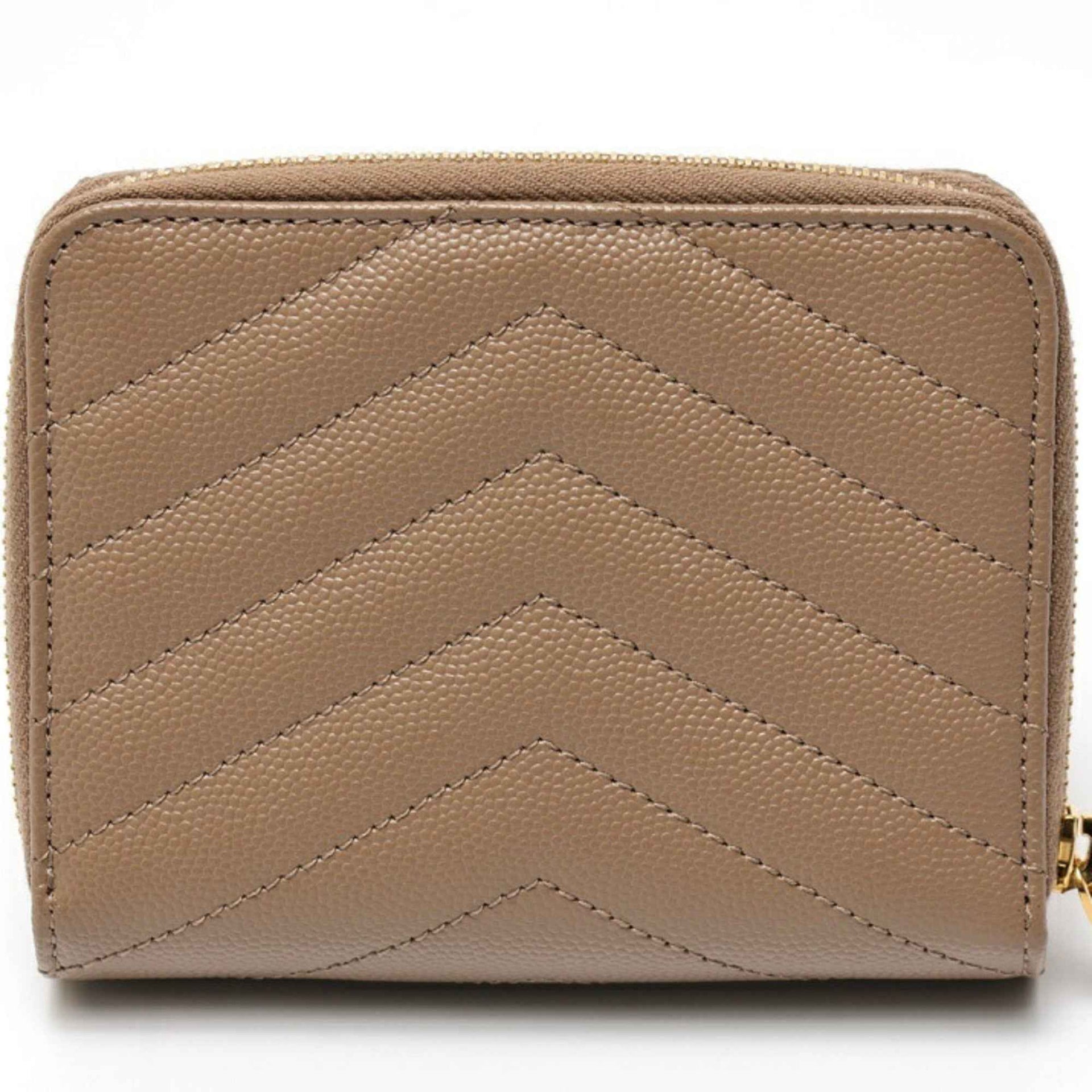 Saint Laurent Cassandra Matelasse Compact Wallet Zip Around 668288 403723 Leather Greige E-158890