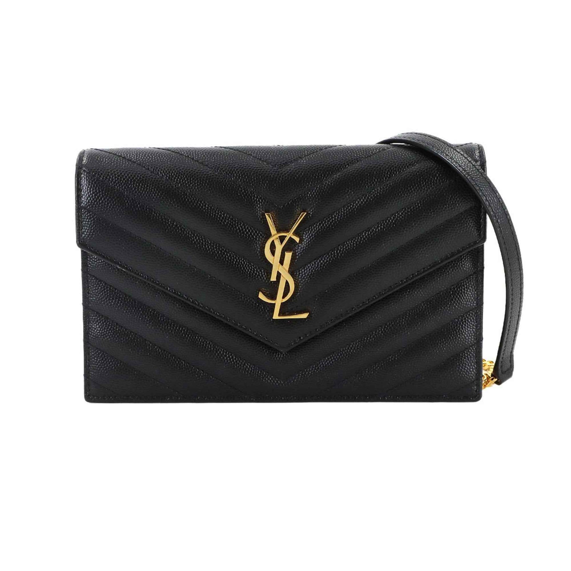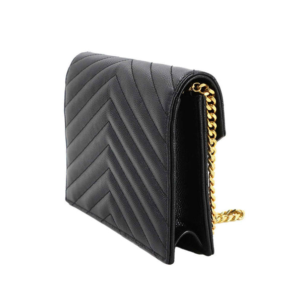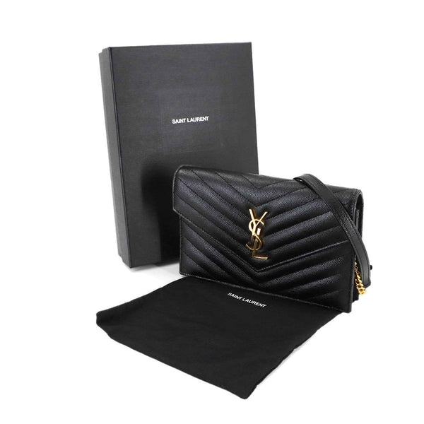 Saint Laurent Cassandre Envelope Chain Wallet, black leather with gold hardware (product number 742920).