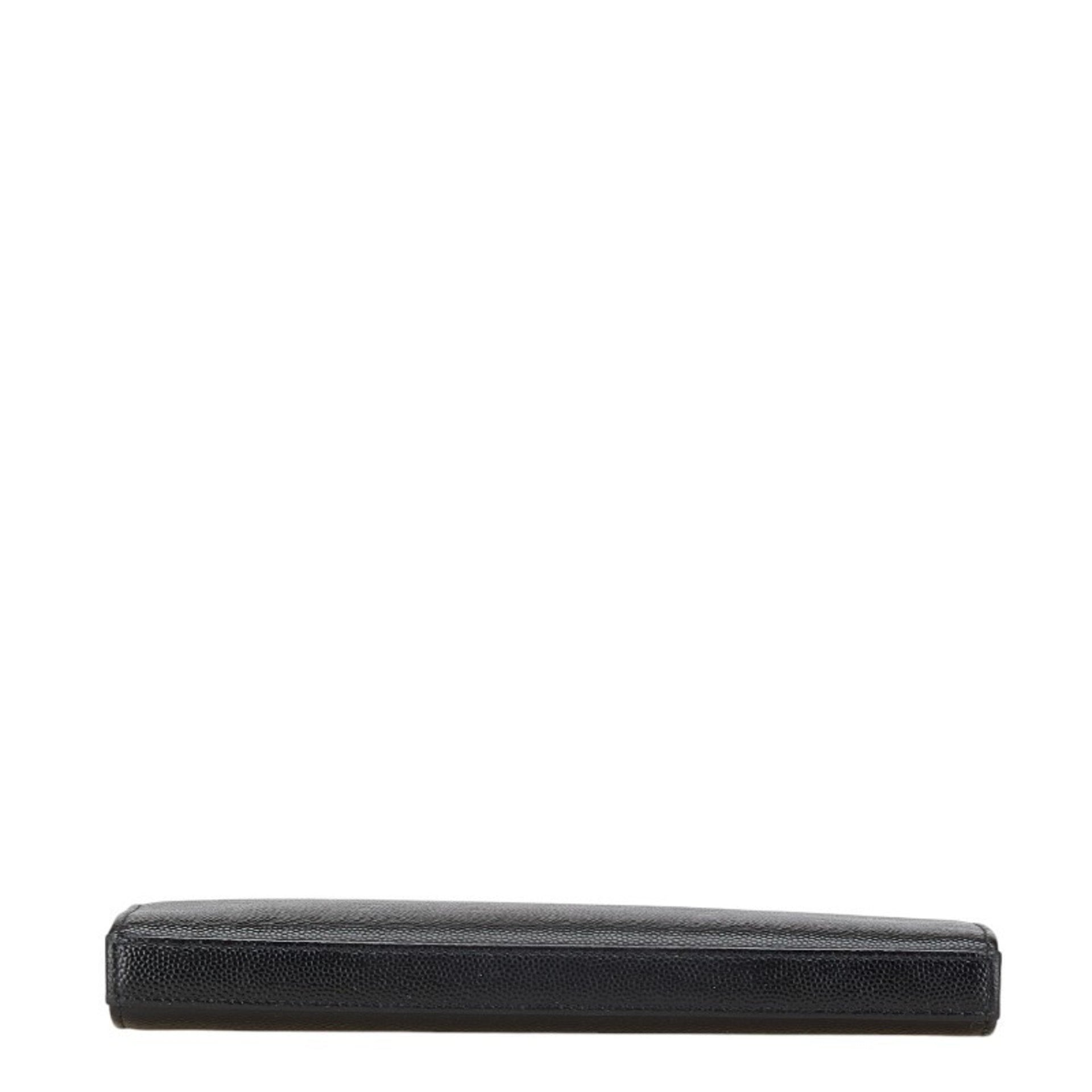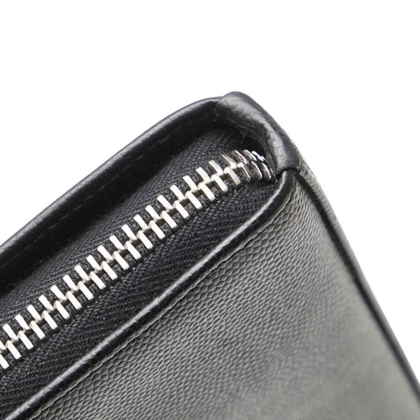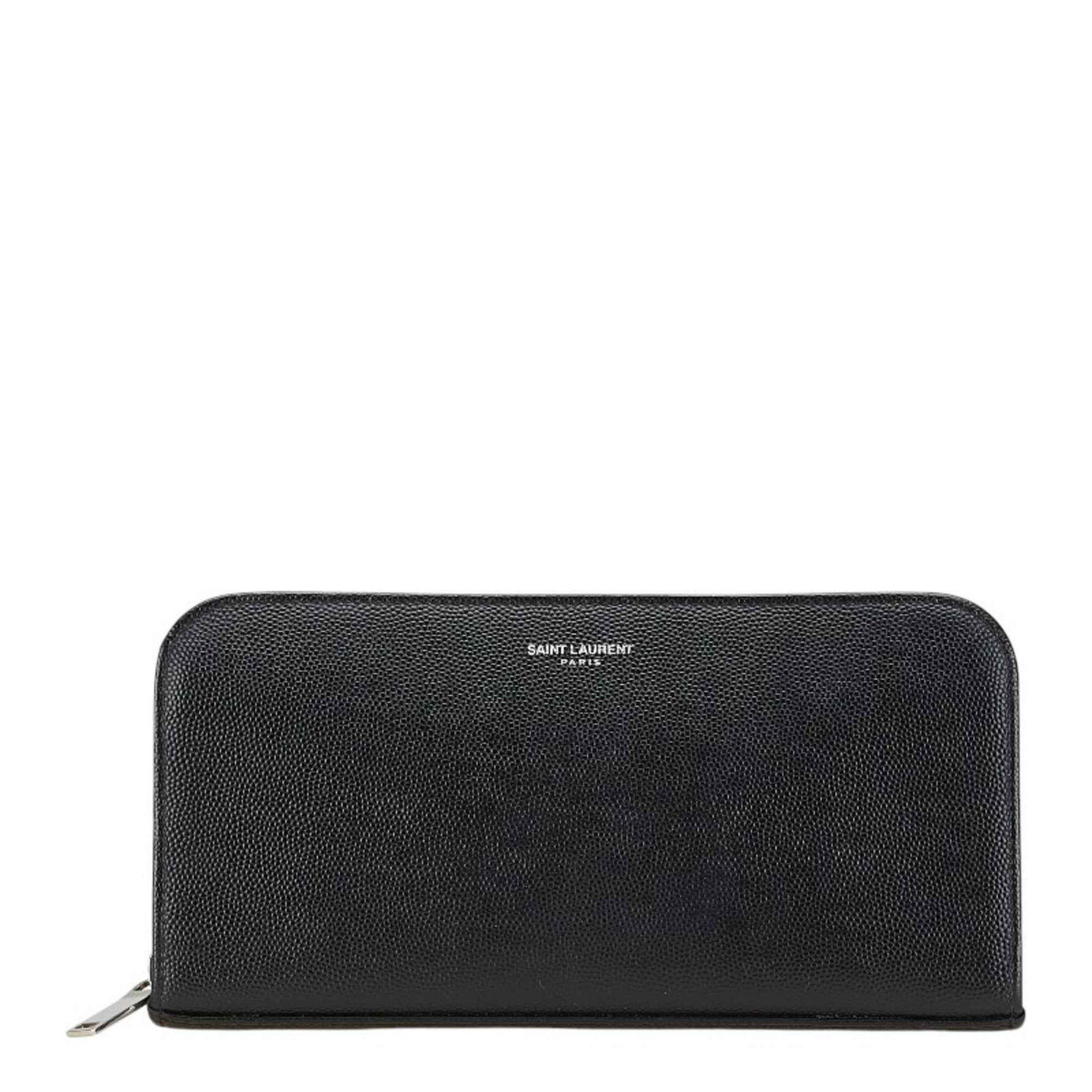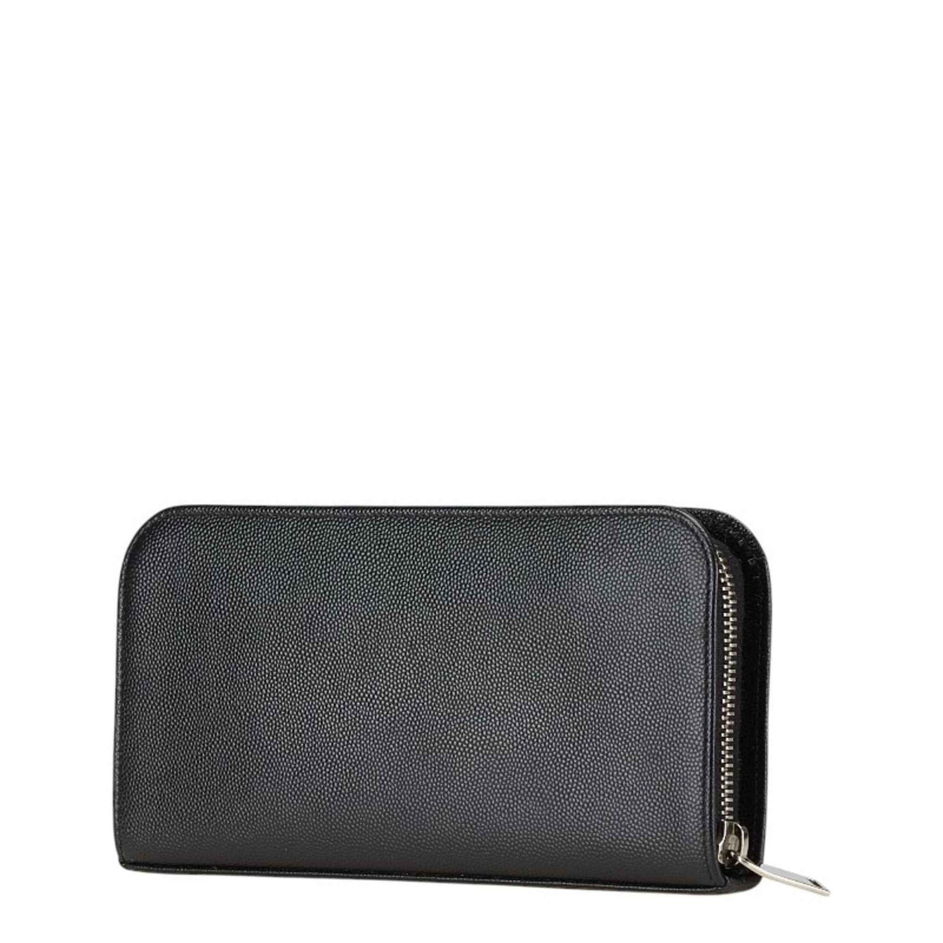 Saint Laurent logo round zipper long wallet in black leather for women.