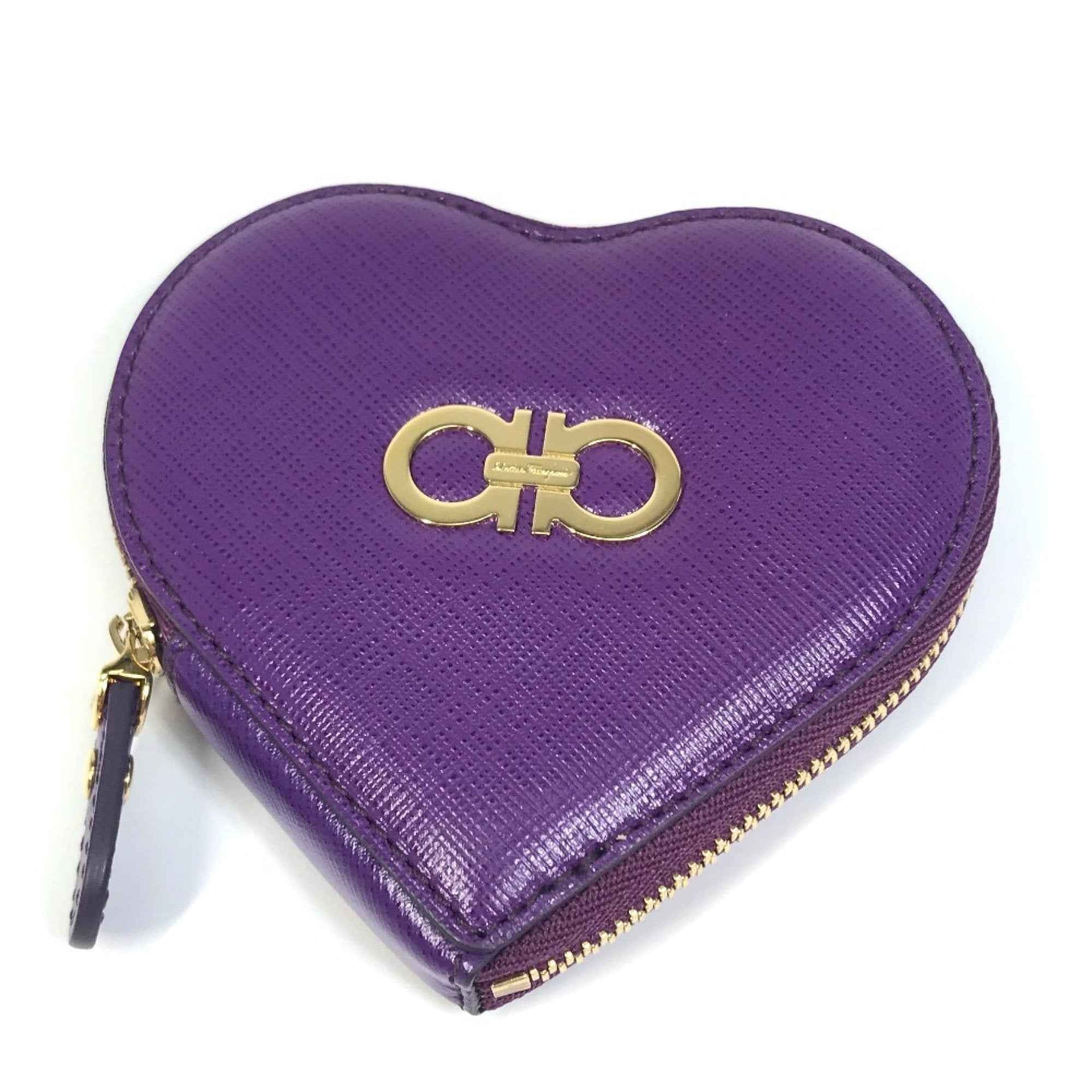 Salvatore Ferragamo AU-22 Gancini Heart Coin Purse, Leather, Women\'s, Purple