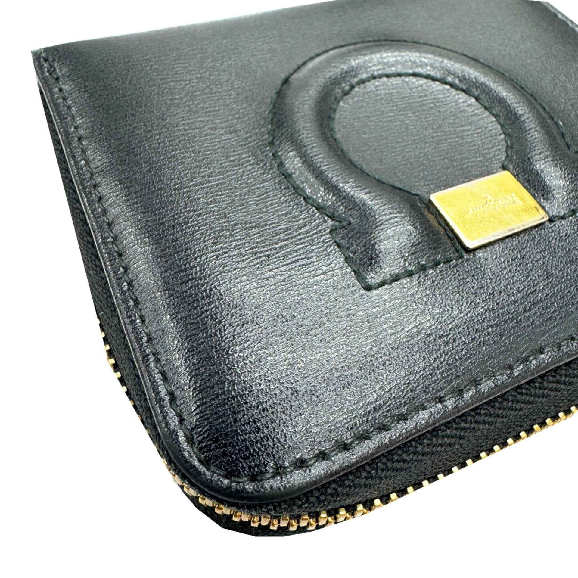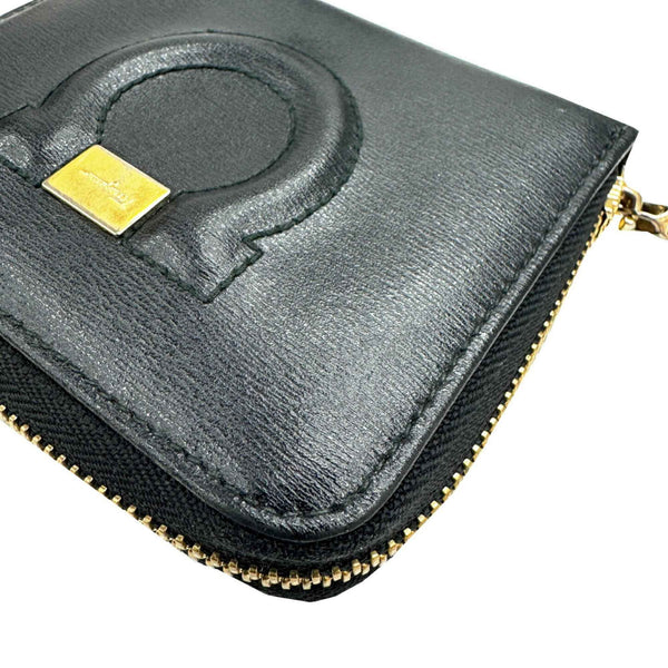 Salvatore Ferragamo Gancini bifold wallet, compact zip-around leather, black, red, for men and women.