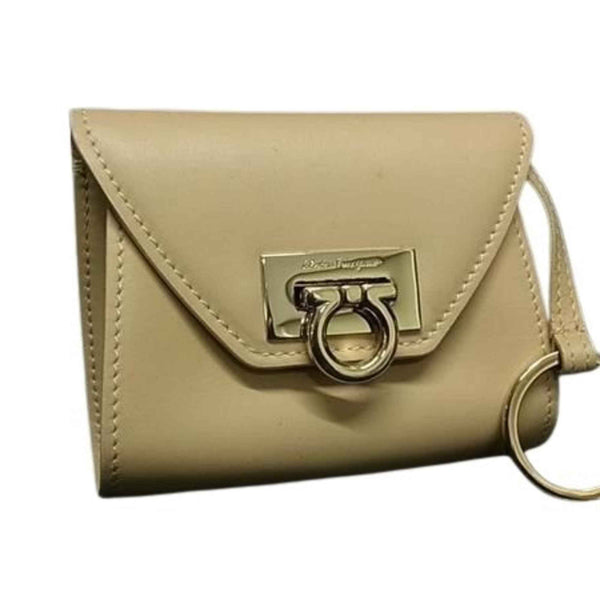 Salvatore Ferragamo Gancini Coin Purse 66 4670 Beige Leather Women\'s