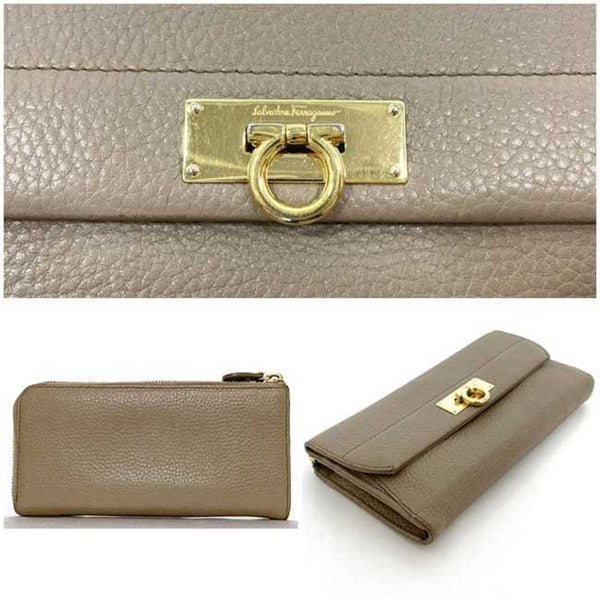 Salvatore Ferragamo L-shaped long wallet ec-23811 beige Gancini JP-22 C297 leather women\'s