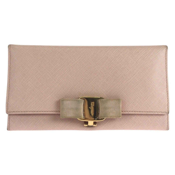 Salvatore Ferragamo Vara pink leather long wallet with gold hardware