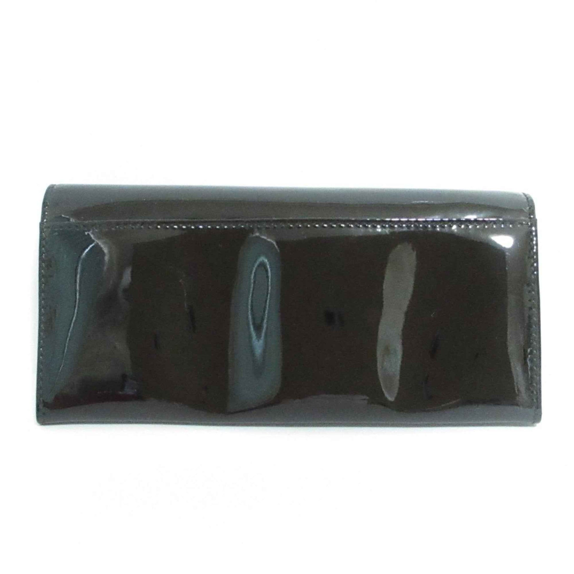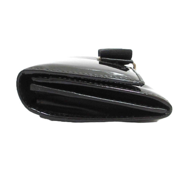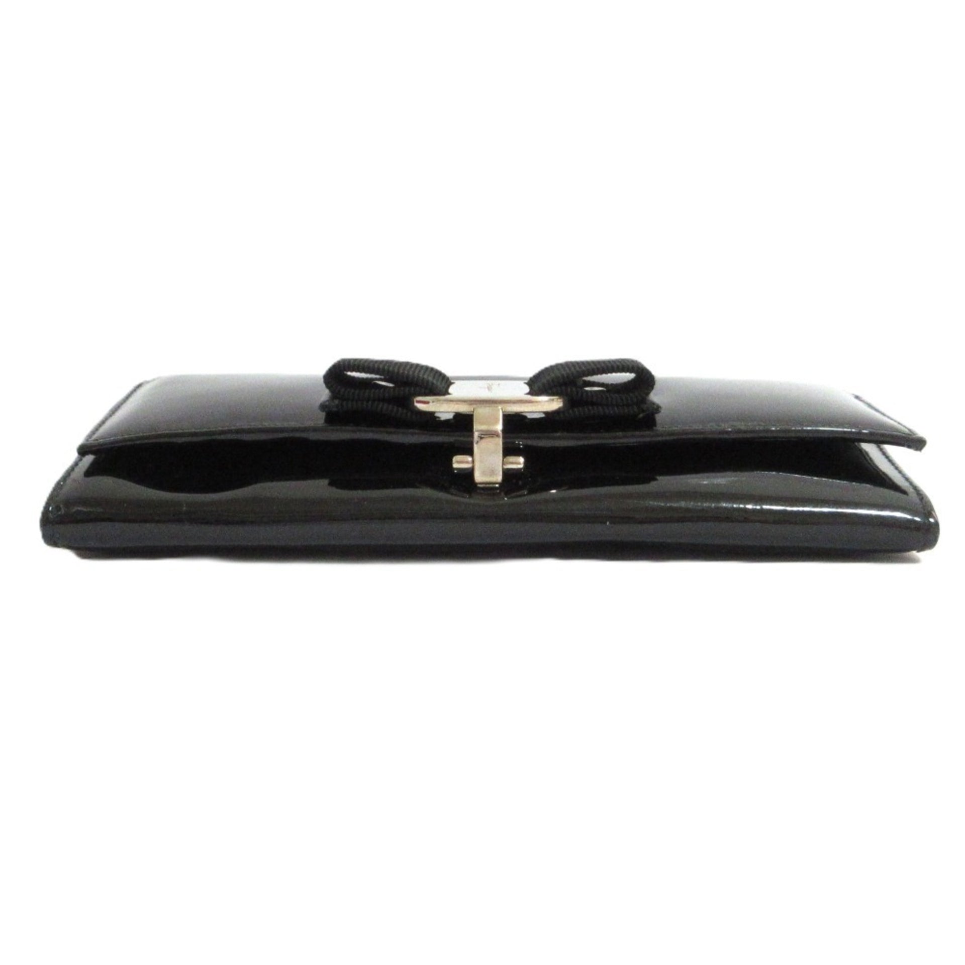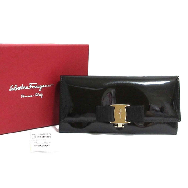 Salvatore Ferragamo Vara Ribbon Patent Long Wallet, Tri-fold Black, Silver Hardware, Women\'s