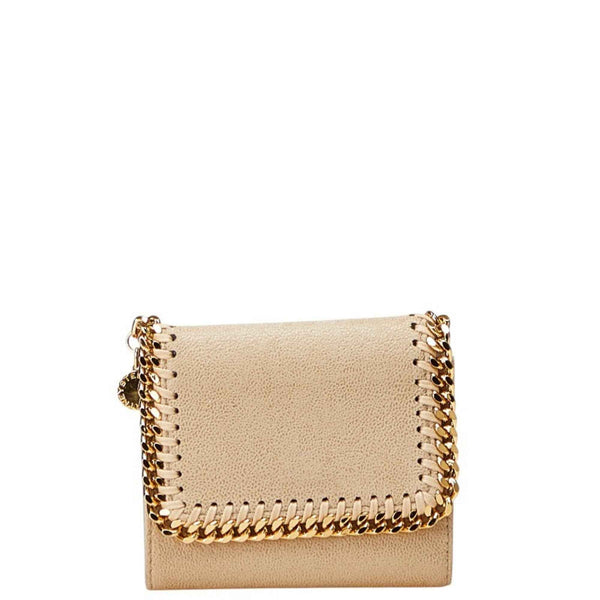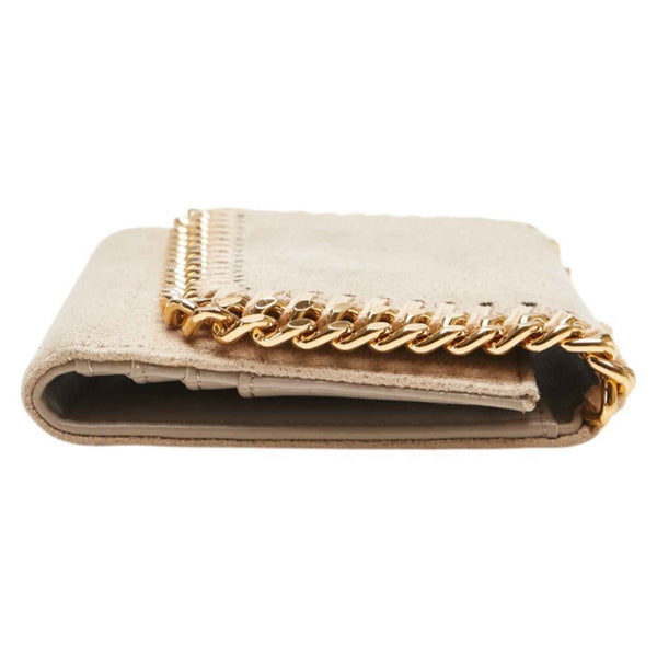 Stella McCartney Falabella Tri-fold Wallet in Beige and Gold Suede Leather for Women
