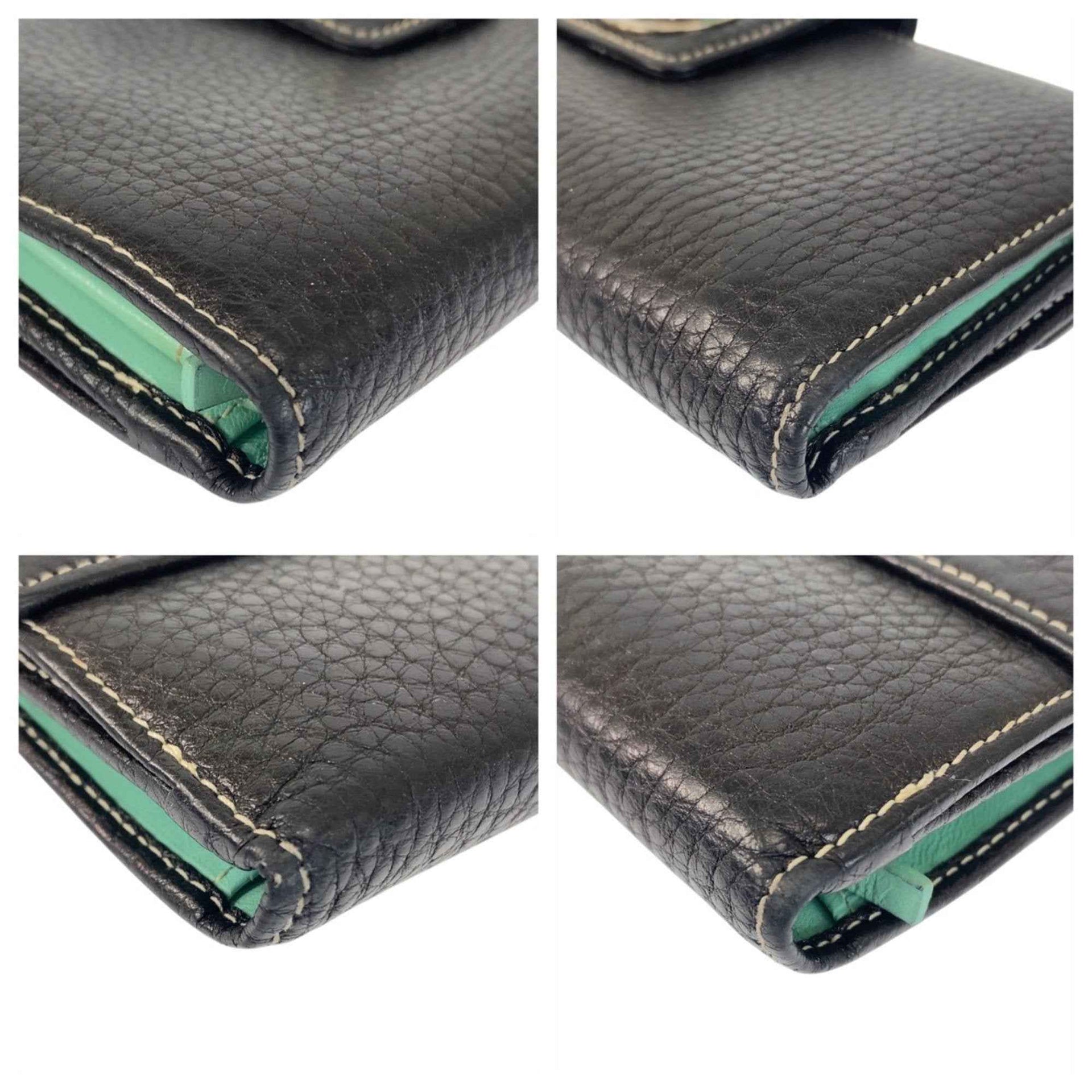 TIFFANY & Co. Tiffany Black/Tiffany Blue Leather Long Wallet H30963G Women\'s