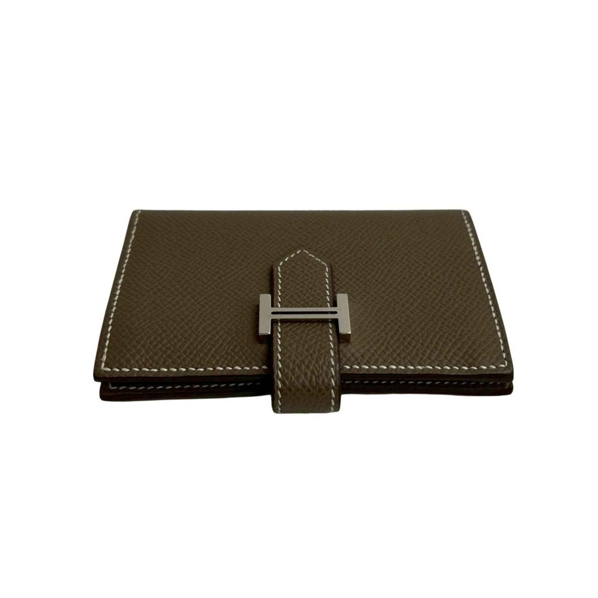 Unused B-stamped HERMES Bearn Mini Card Case, Epsom Leather, Business Holder, Pass Etoupe 09083