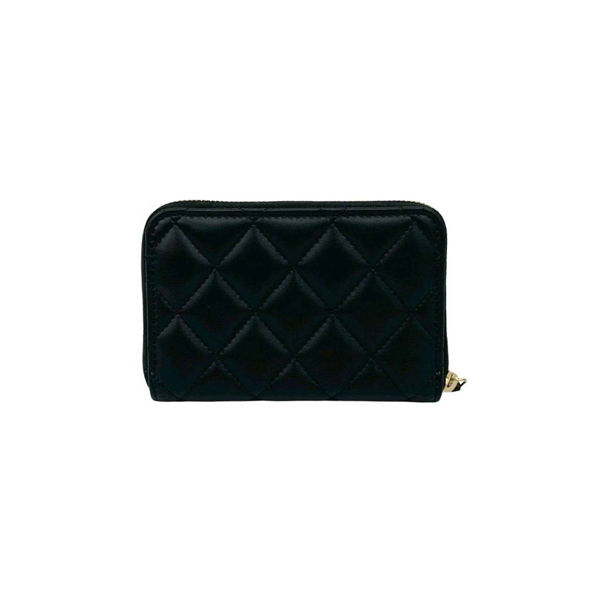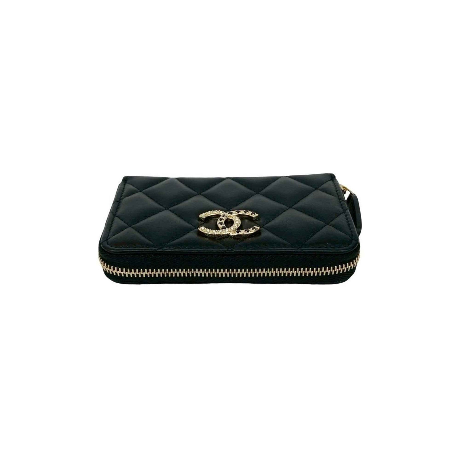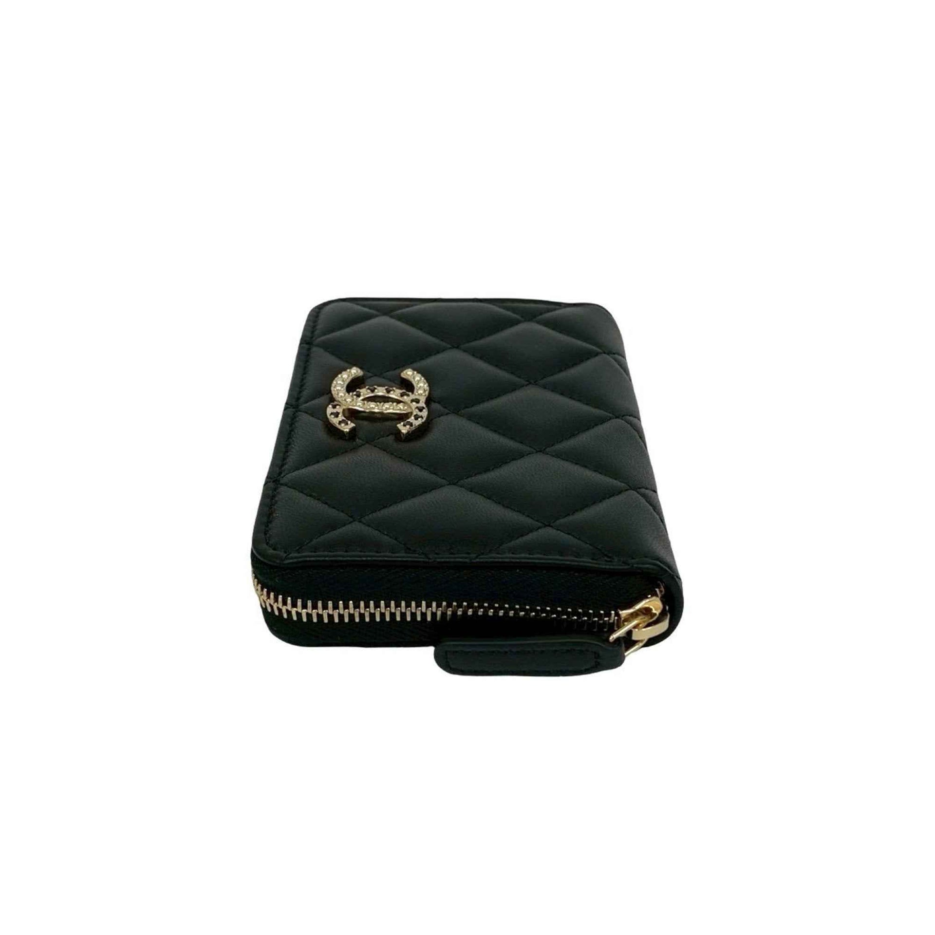 Unused CHANEL Matelasse Coco Mark Rhinestone Lambskin Coin Case Wallet Black 21588