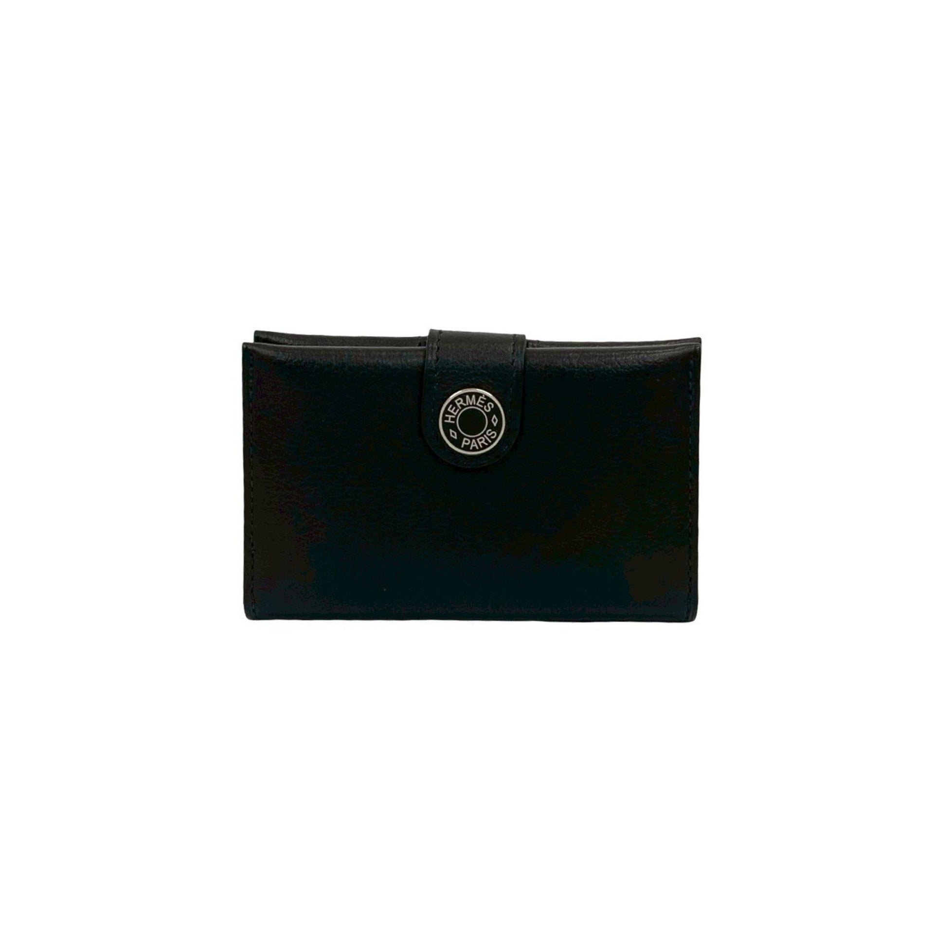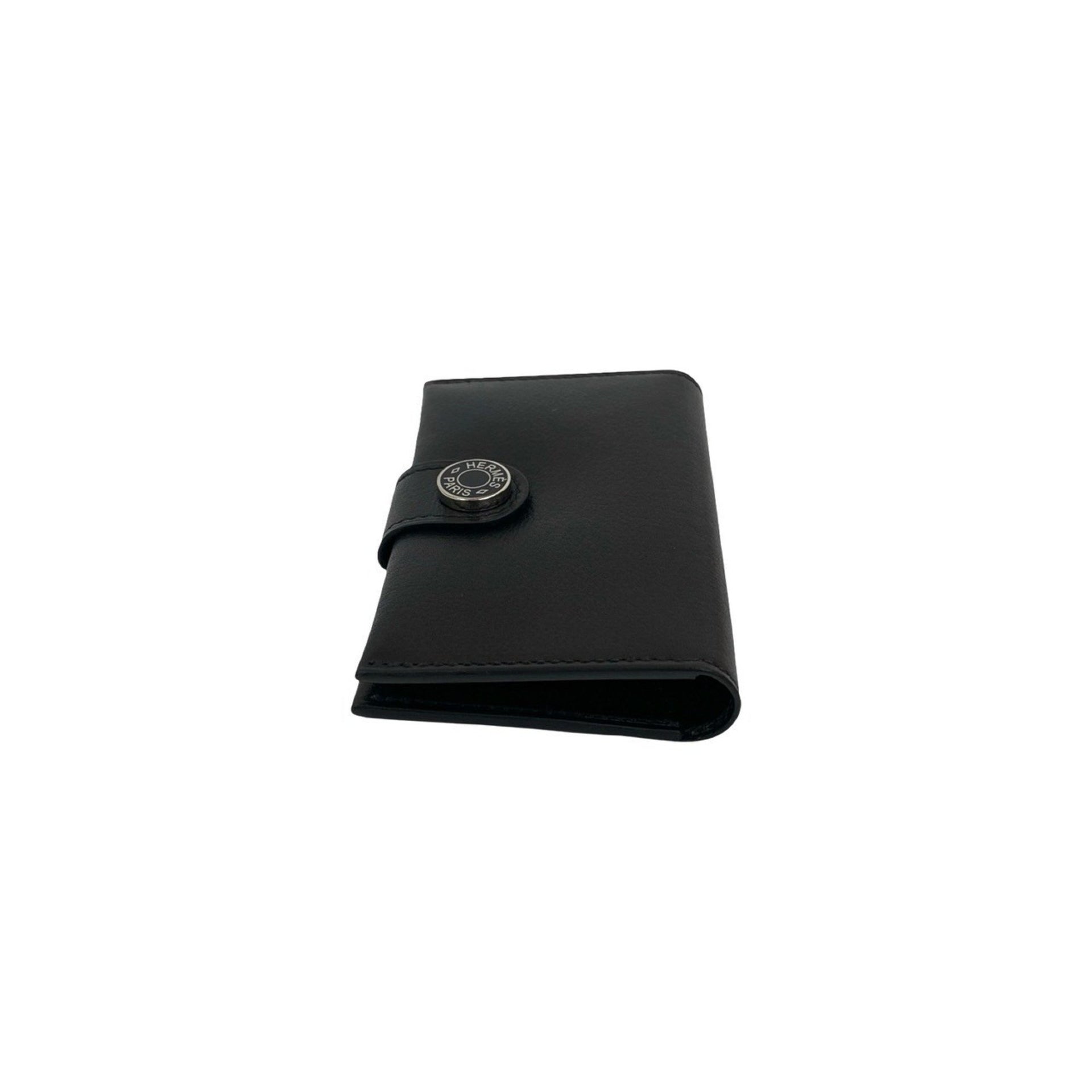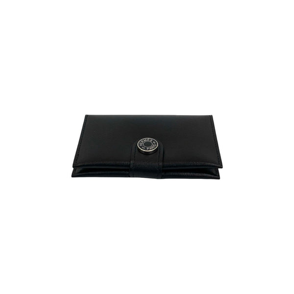 Unused, stored item, B engraved, HERMES RMS bifold leather card case, business holder, pass black, d-188