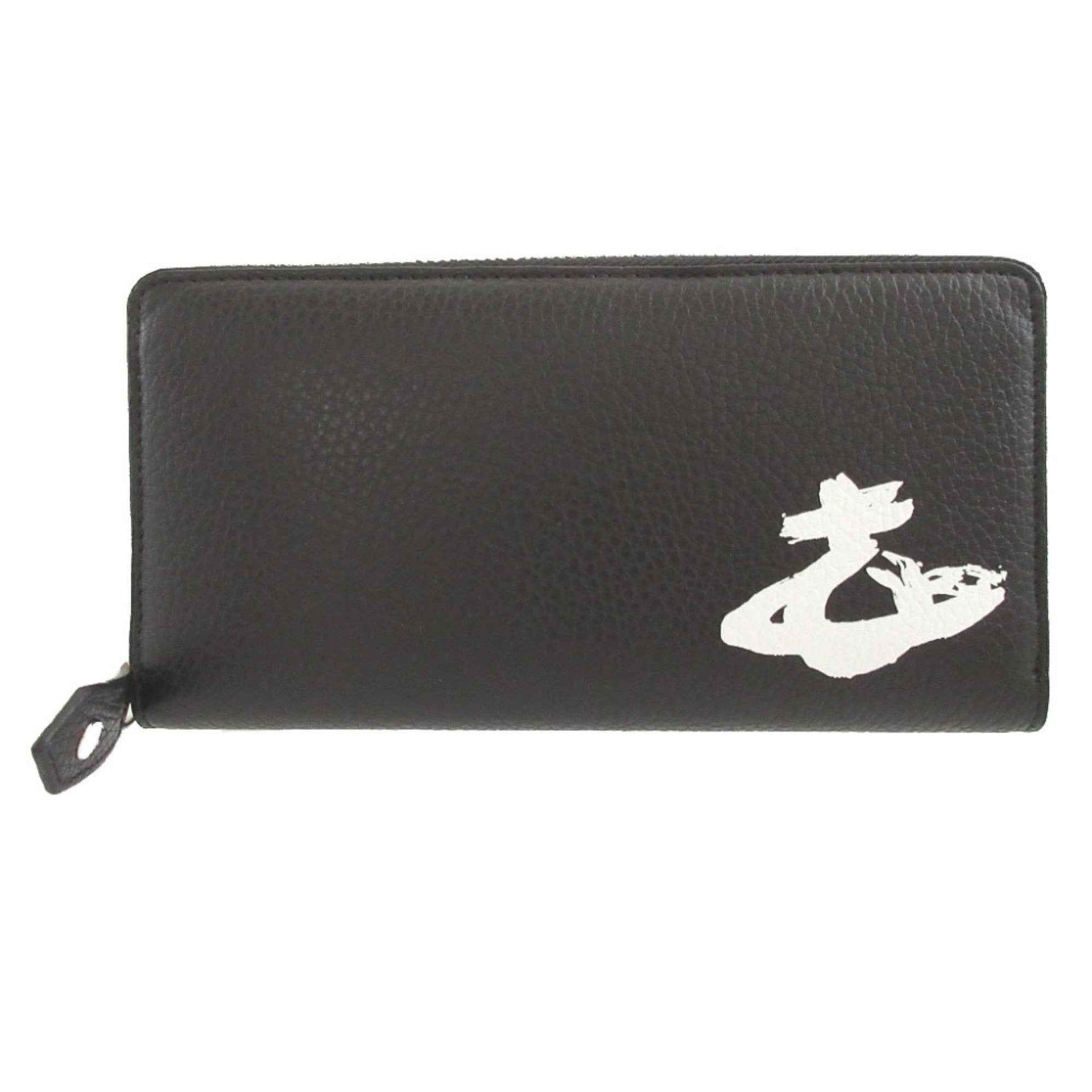 Unused Vivienne Westwood orb pattern leather black round zip long wallet 1657