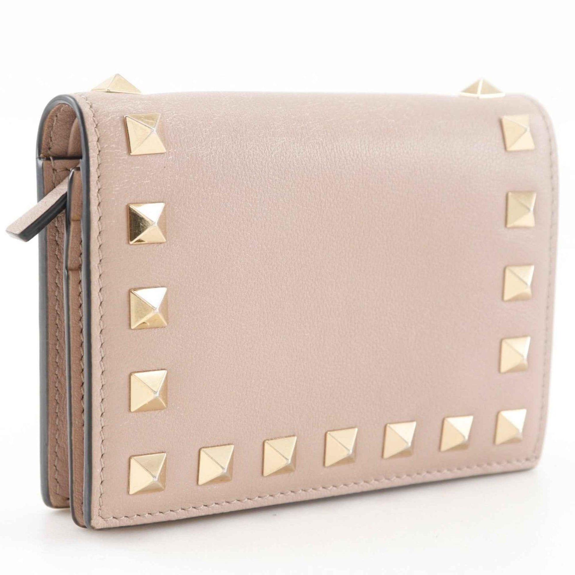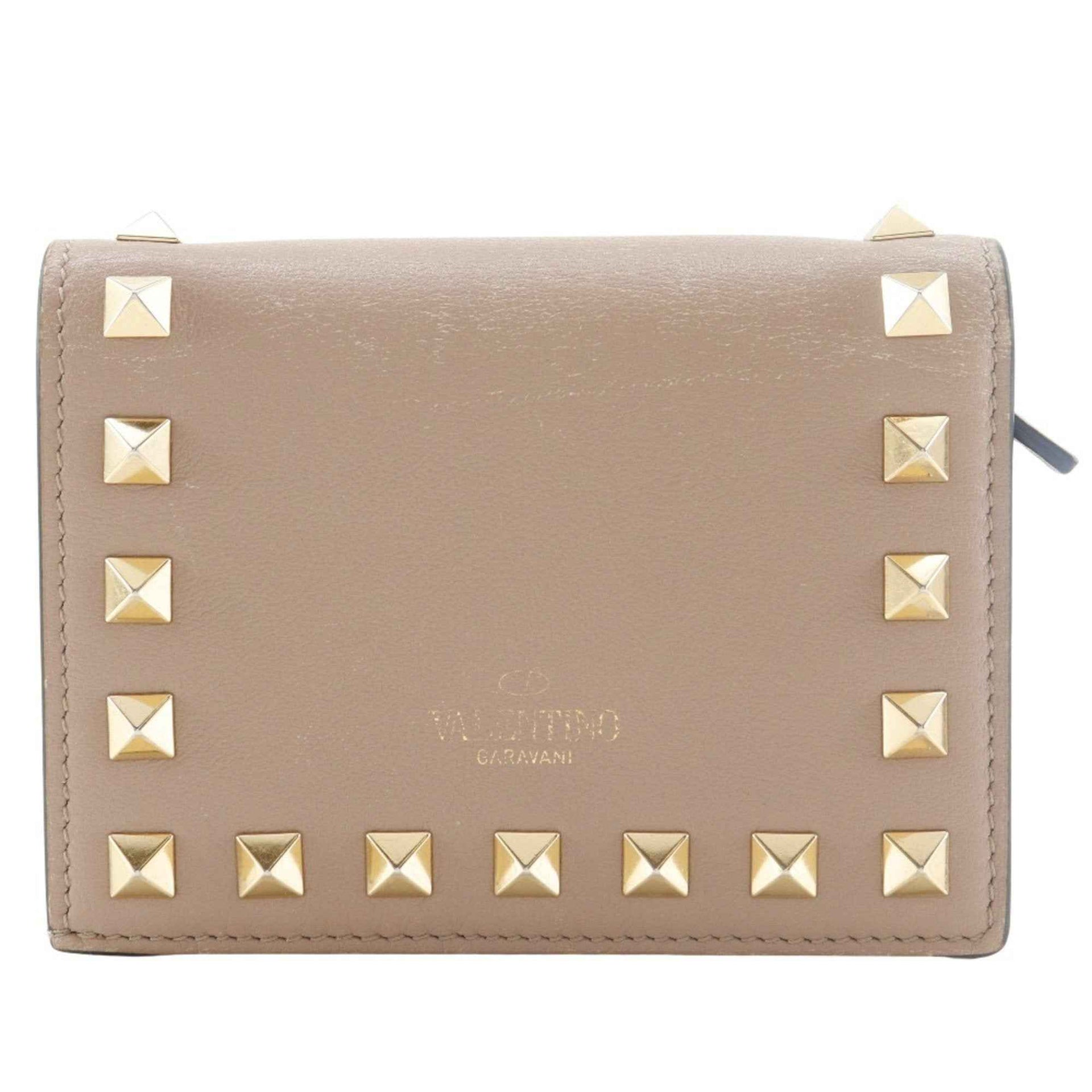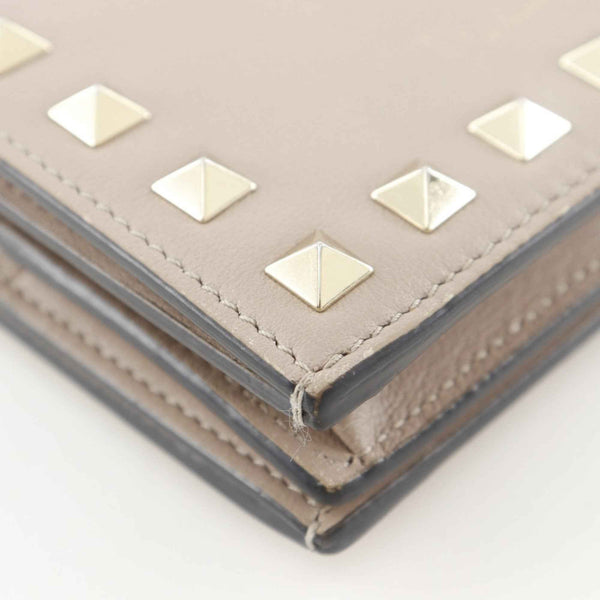 Valentino Garavani Rockstud Small Wallet, Bifold WW2P0P39BOL, Beige Calfskin with Snap Buttons, Women\'s