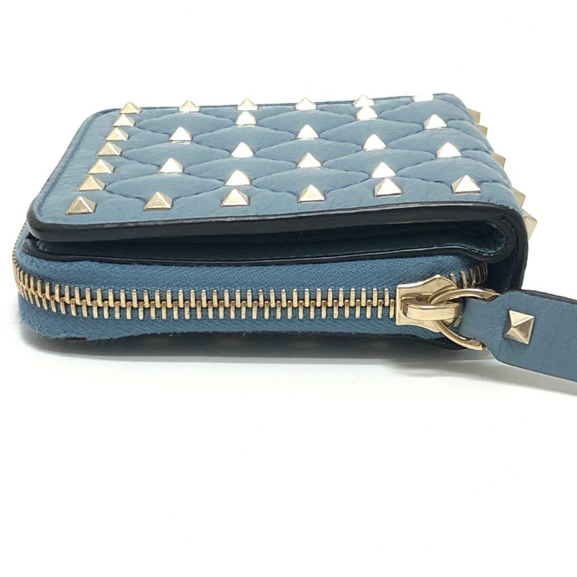 VALENTINO Quilted Rockstud Compact Wallet, Bi-fold Leather Women\'s, Blue