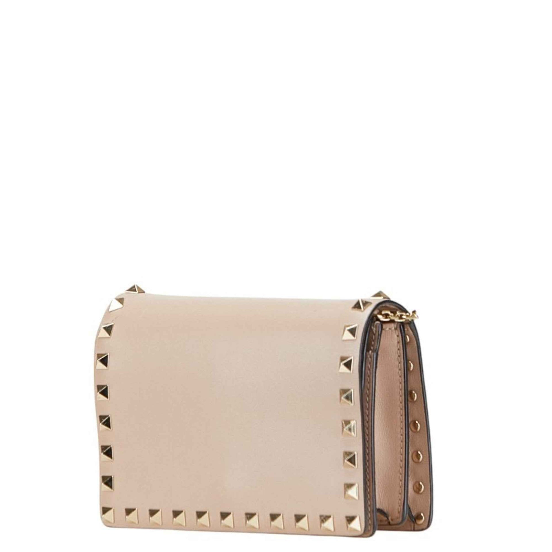 Valentino Rockstud Chain Wallet Shoulder Bag in Greige Leather for Women