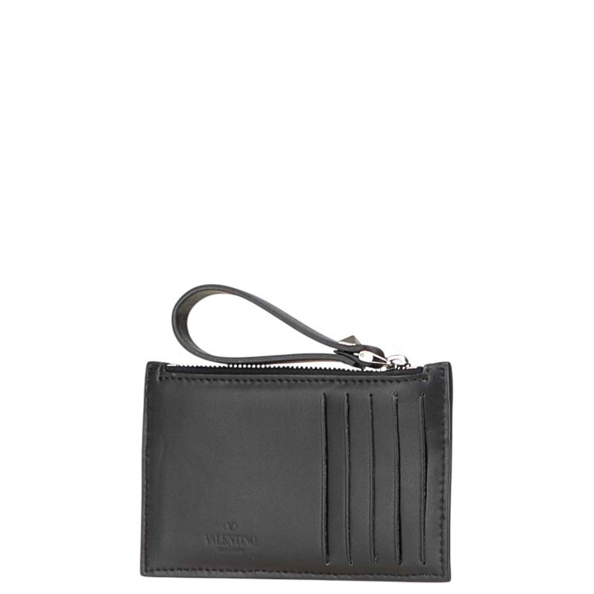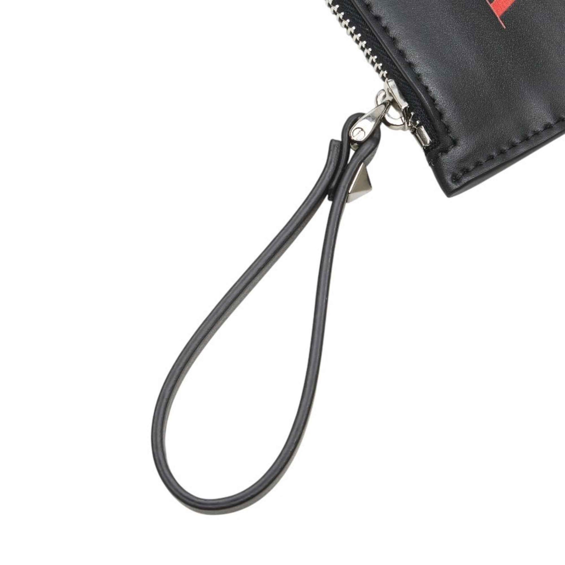 Valentino VLT logo print wallet/coin case, fragment black and multicolored leather, women\'s.