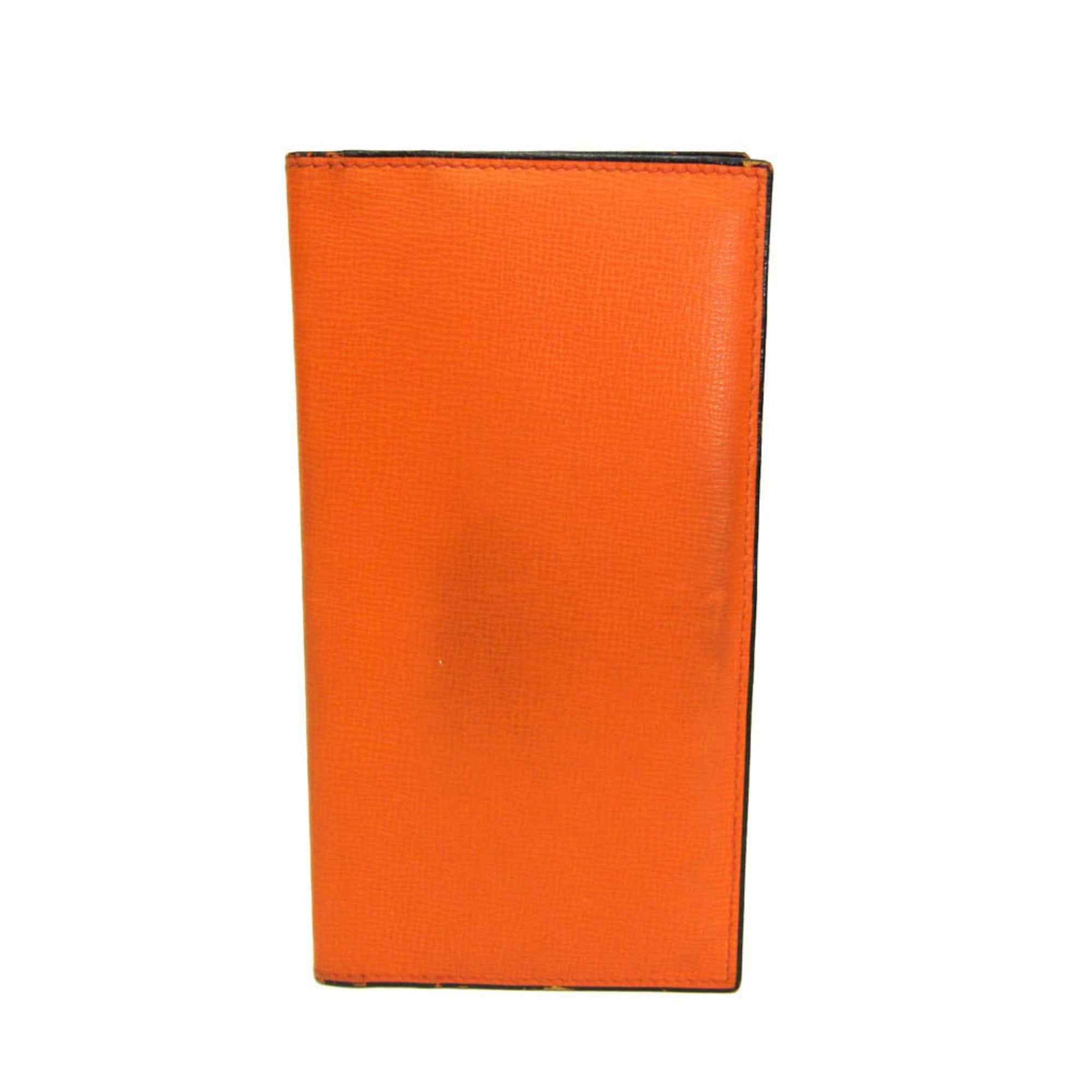 Valextra Vertical 12 Card V8L21 Men,Women Leather Long Bill Wallet (bi-fold) Orange