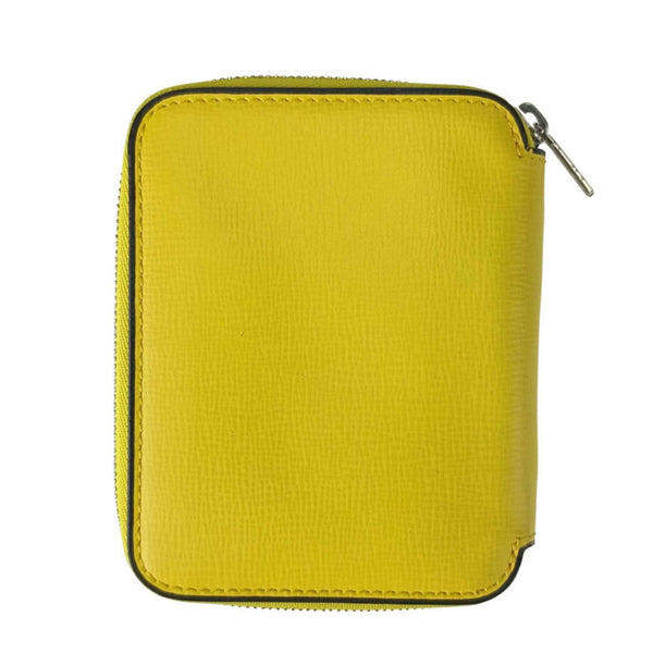 VALEXTRA Zip-Around Card Holder V8L34 in Yellow Grained Calfskin for Men and Women, Round Billfold