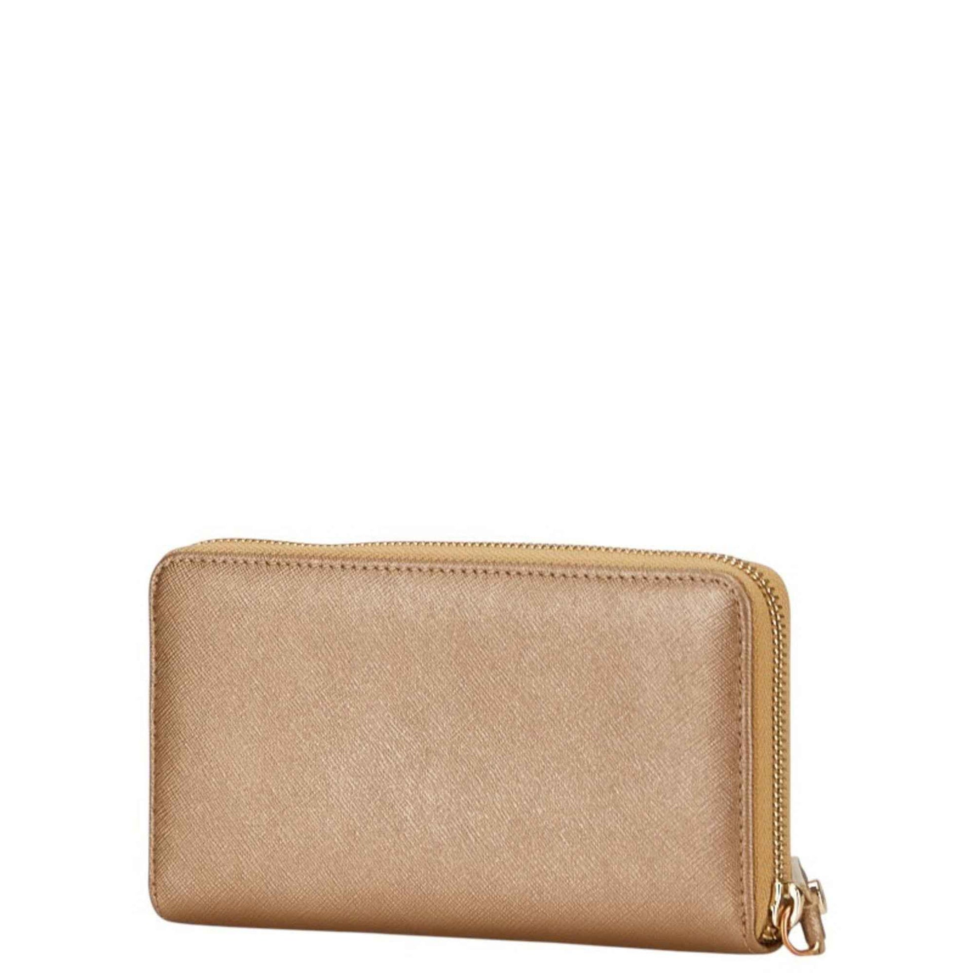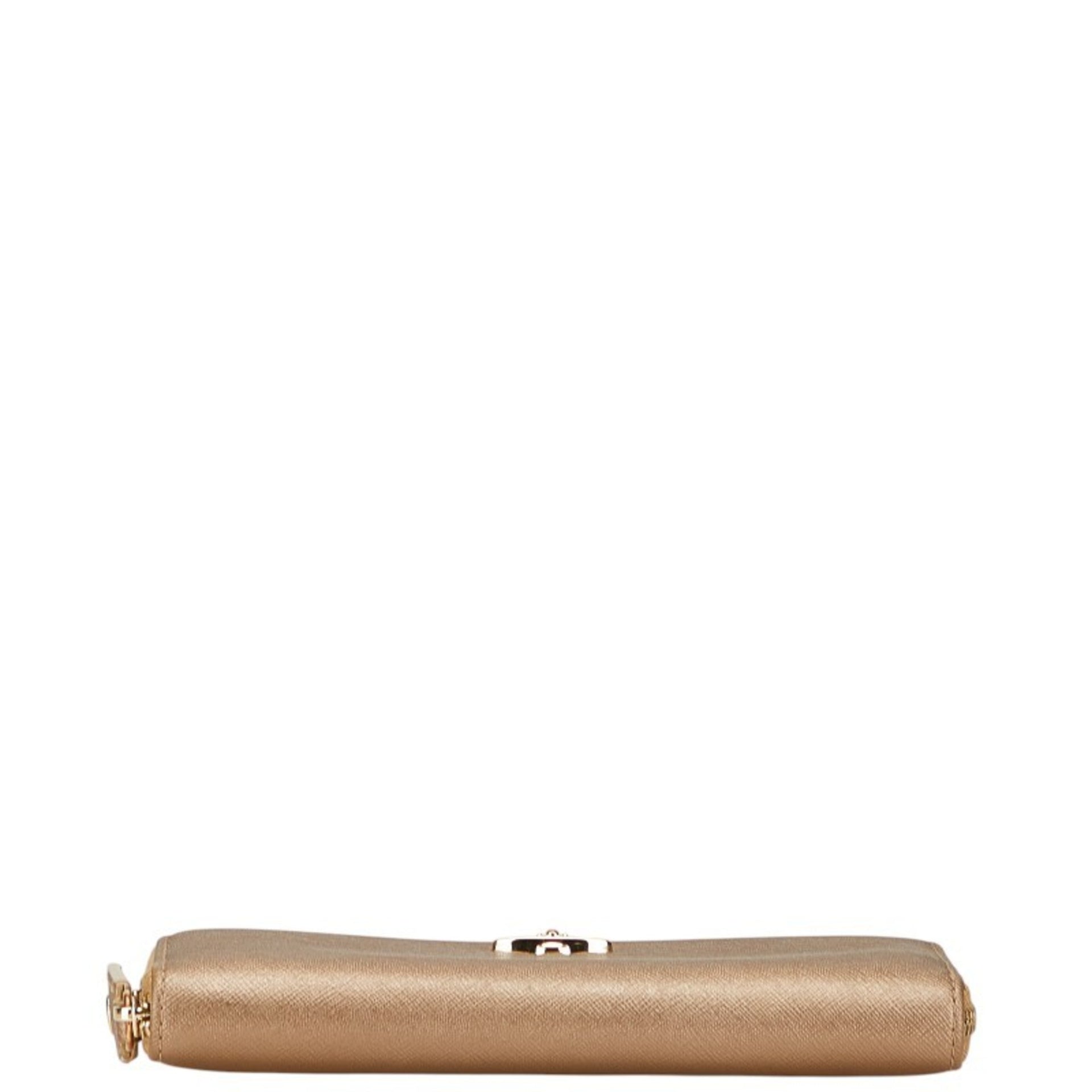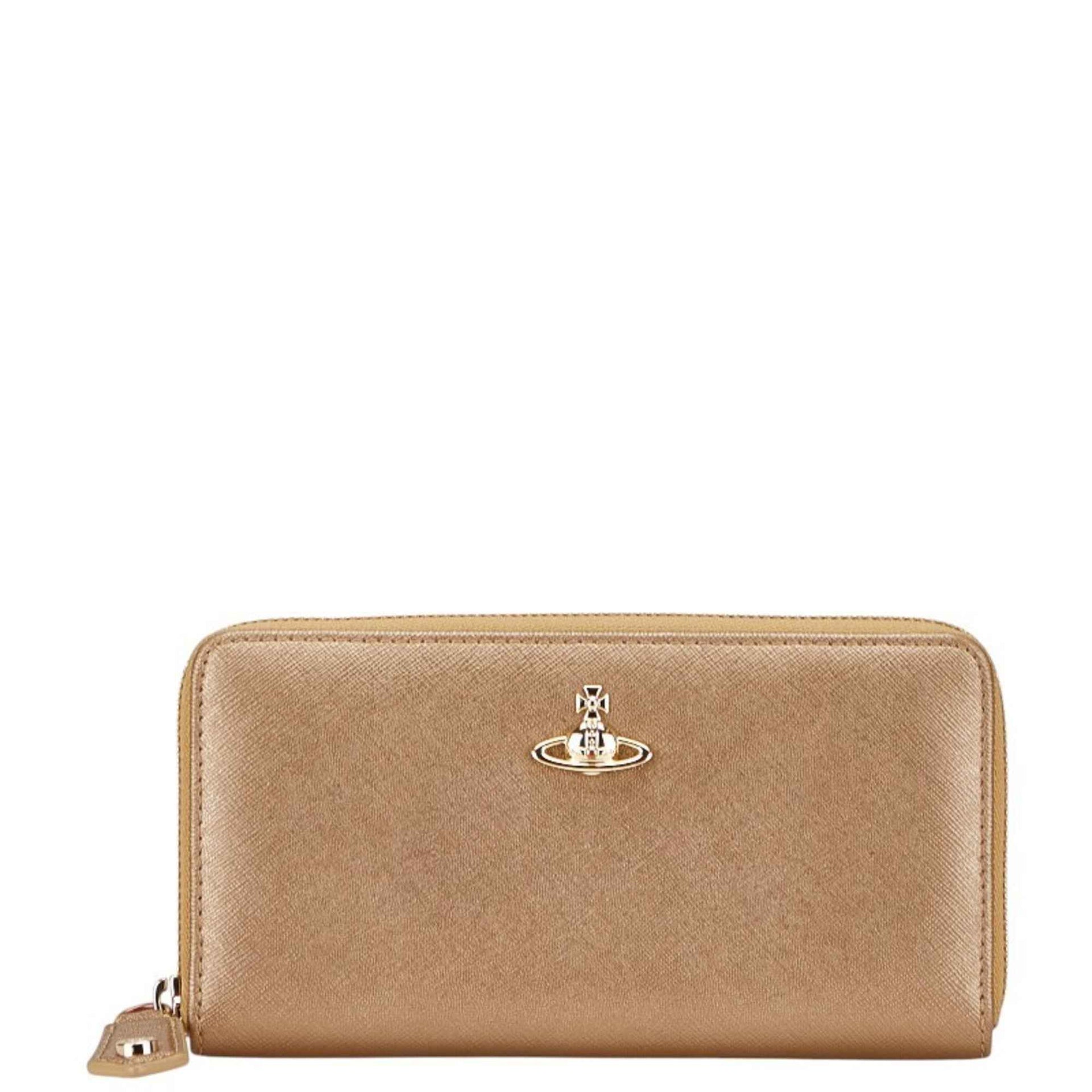 Vivienne Westwood Victoria Classic Long Wallet with Round Zipper, Gold and Brown Leather, Women\'s
